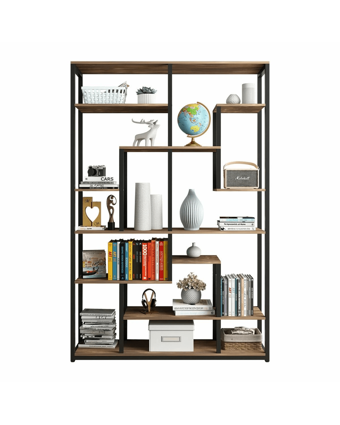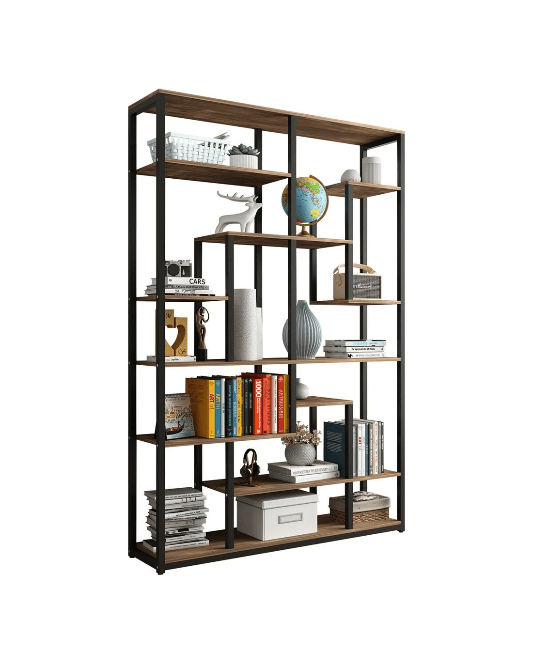 Our Vintage Elegant Bookshelf combines artistic design with practical functionality, creating a modern marvel that effortlessly showcases a variety of items, from books and family photos to potted plants, CDs, and utensils. Not just a space-saving solution, its contemporary design not only maintains an organised and clutter-free home but also captivates guests with a chic and fashionable aesthetic. Maximising vertical storage space, the 7-tier shelf design provides ample room for your favourite books, knickknacks, family photos, ornaments, and cherished collections. Crafted with precision from high-grade particleboard and heavy-duty metal, this bookshelf guarantees not only a timeless appeal but also substantial weight capacity and durability. Our commitment to quality extends to the packaging, which features reliable thickened foam and sturdy edges for secure transit. Assembly is a breeze with numbered parts and illustrated steps, making the setup effortlessly elegant.