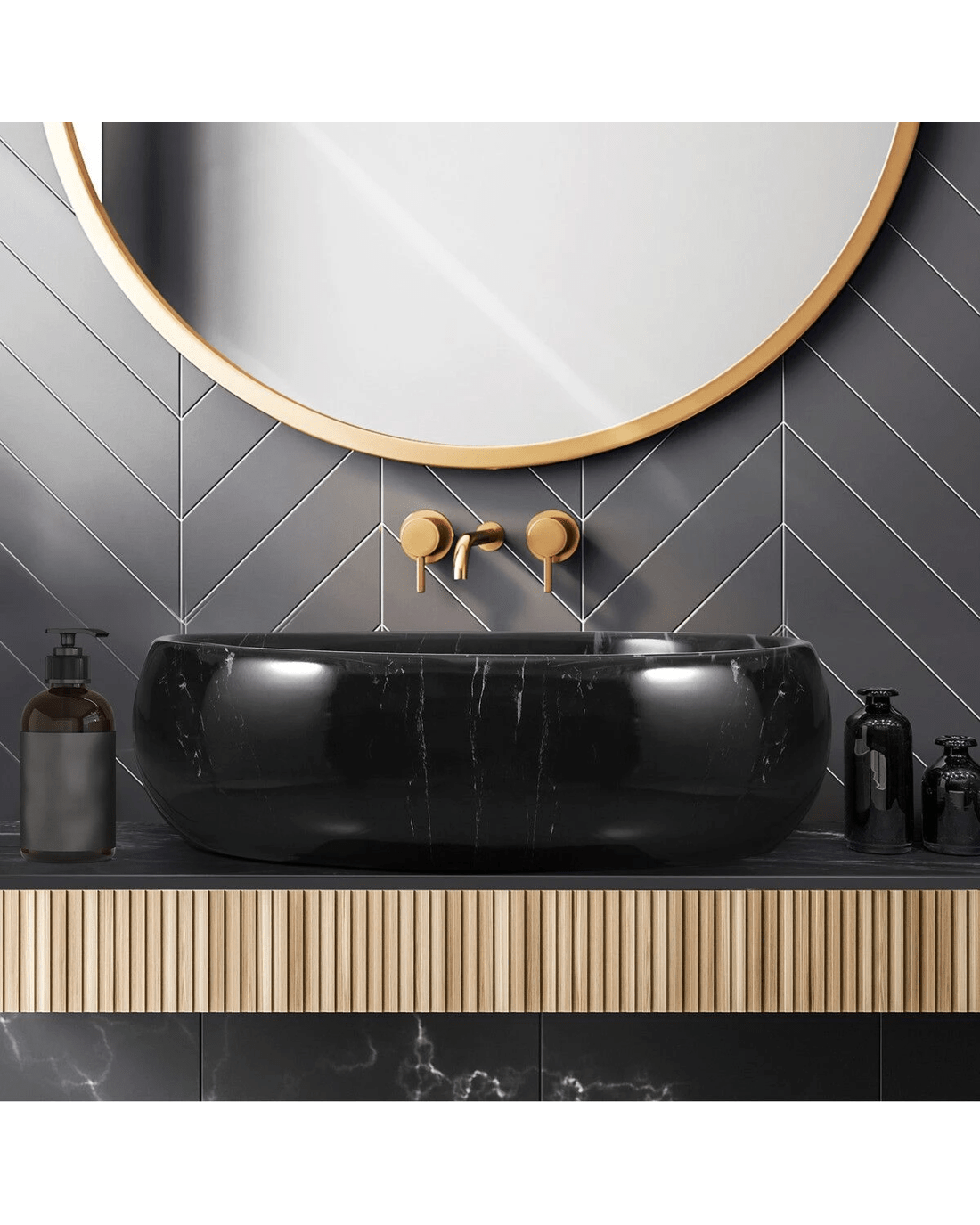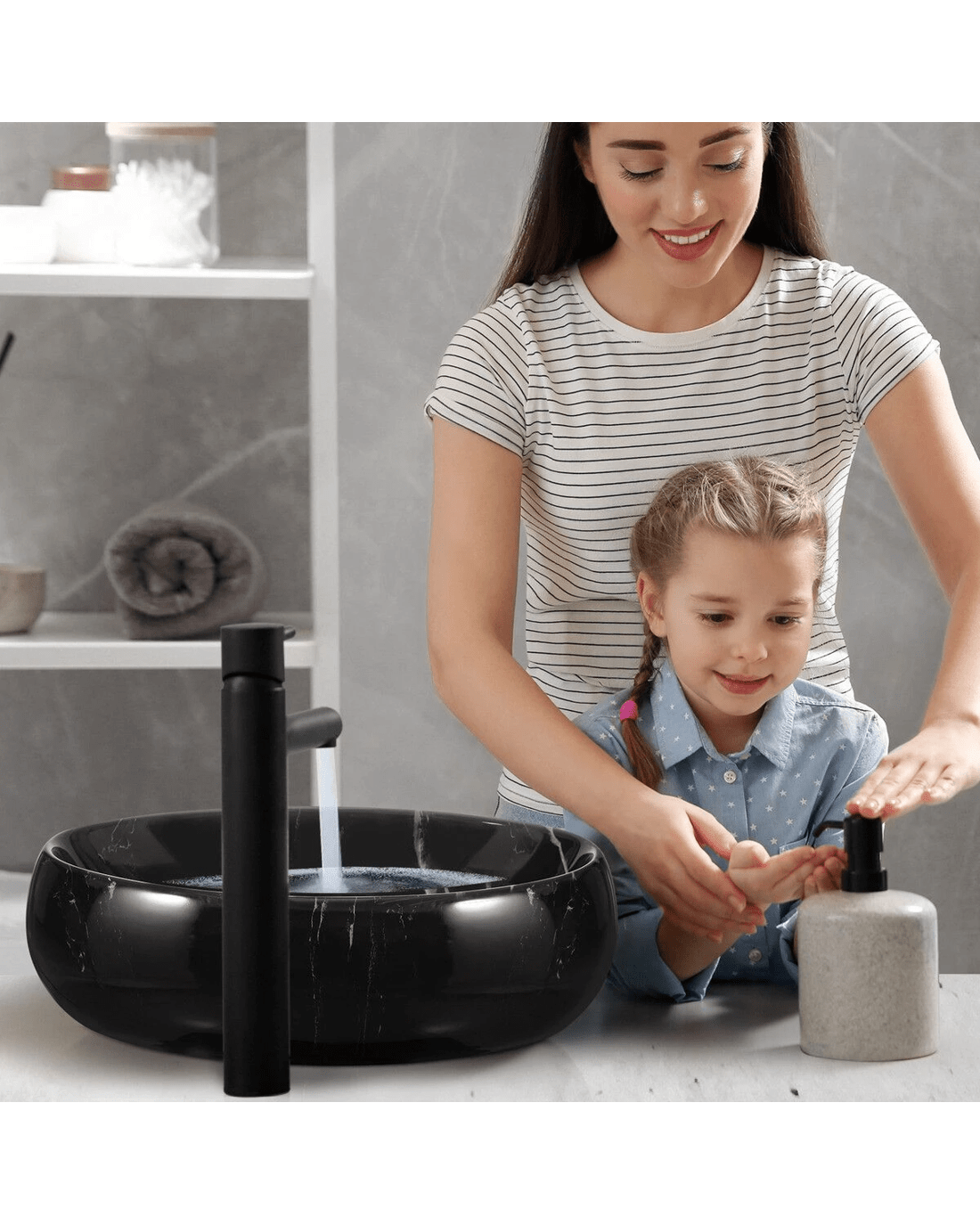 - Note: Each marbled vessel sink has a unique pattern varying slightly from the image.