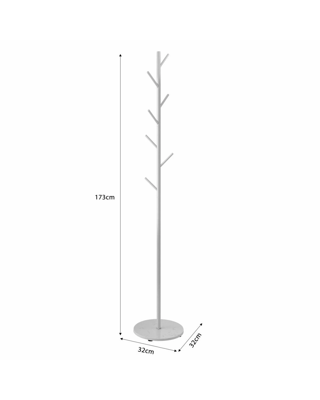This stylish garment rack is the perfect solution for your storage needs. With an easy installation that includes all accessories and detailed instructions, you'll have it up in no time. The classic design of this coat stand is not only aesthetically pleasing, but it's also an excellent space-saving option. What’s more, seven hanger hooks provide ample storage for your jackets, coats, caps, bags, and more as you want. Made with premium-quality materials, including a marble base and a sturdy metal frame, this shelf is incredibly stable and durable. Each hook can hold up to 5 kg, making it perfect for your daily use. Invest in this versatile freestanding shelf for a practical and stylish storage solution.