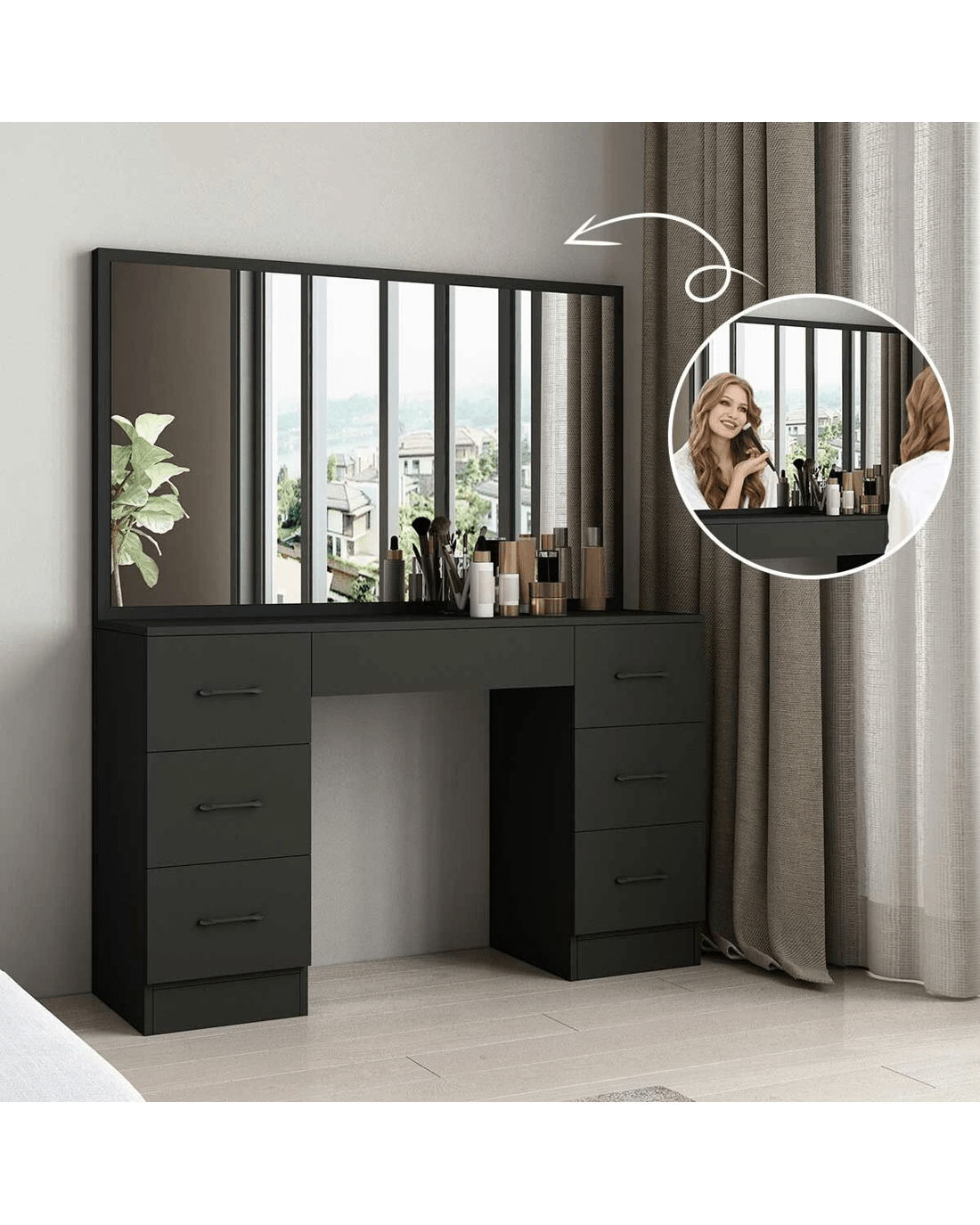 - Makeup table with high clarity and wide mirror