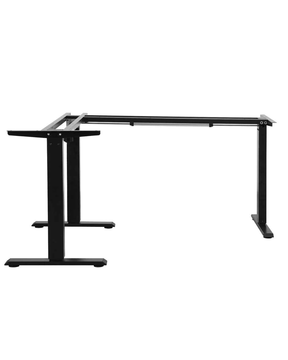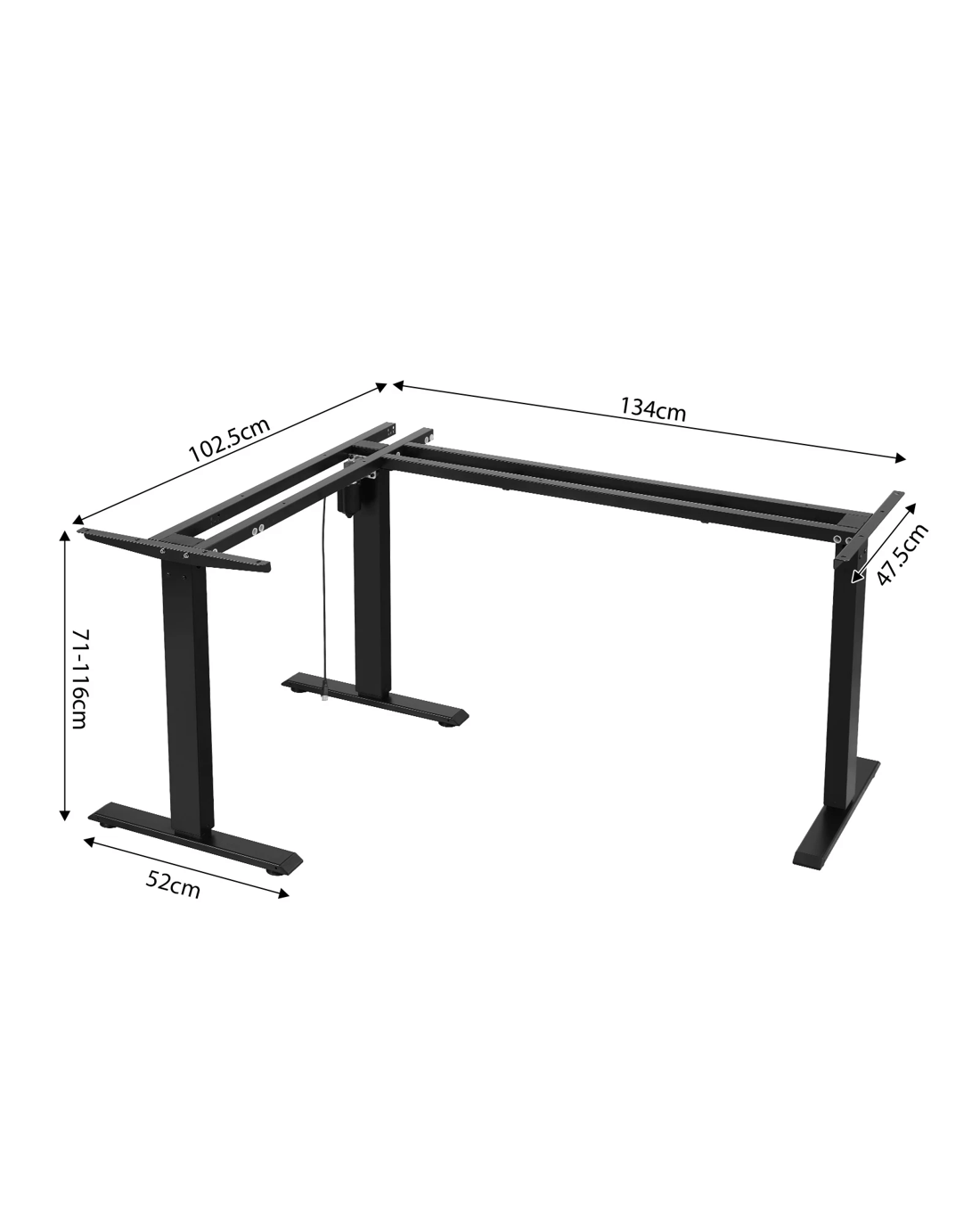 Customise your workstation with our Electric L-Shaped Stand-Up Desk Frame. Engineered for ergonomic comfort, the single-motor desk frame provides smooth height adjustments from 71 cm to 116 cm, allowing you to easily switch between sitting and standing to boost better posture. Further, its smart 6-key controller features an intuitive LCD screen and three programmable memory settings, plus a convenient fast-charging USB port for personalised control. Meanwhile, its space-saving L-shaped layout maximises your workspace and fits seamlessly into any office or home environment. Made from robust cold-rolled carbon steel with a sturdy three-leg design, this sit-stand desk base offers outstanding stability and hard-wearing durability. And it features advanced collision detection and adjustable foot pads for enhanced safety and adaptability on any surface. Able to lift up to 80 kg, this standing desk base can hold multiple monitors and essential office gear with ease.