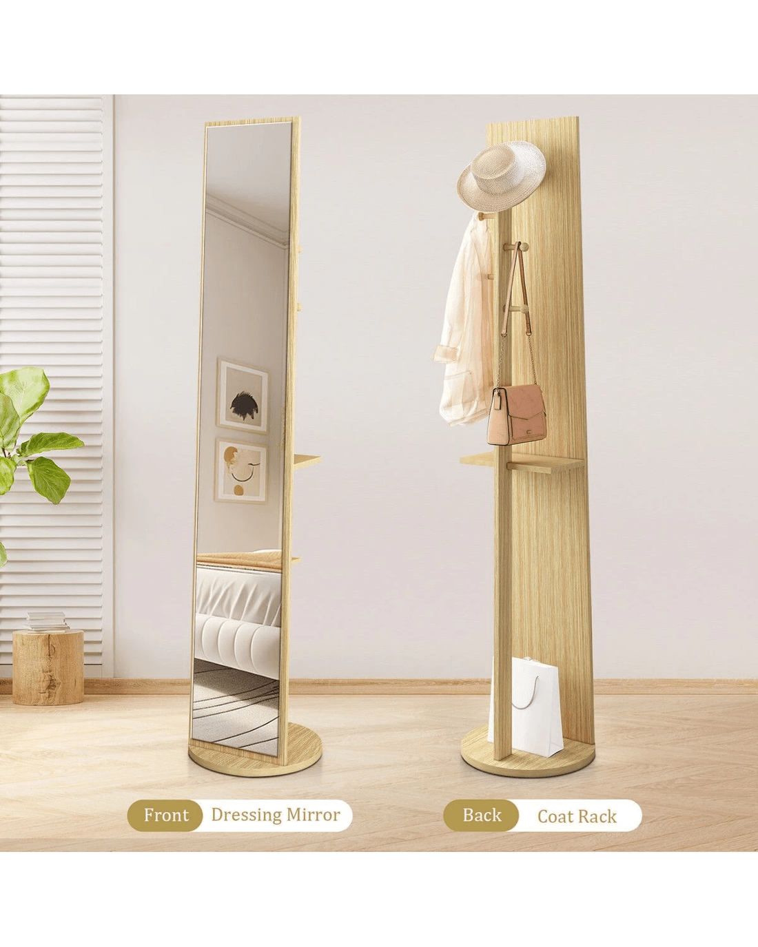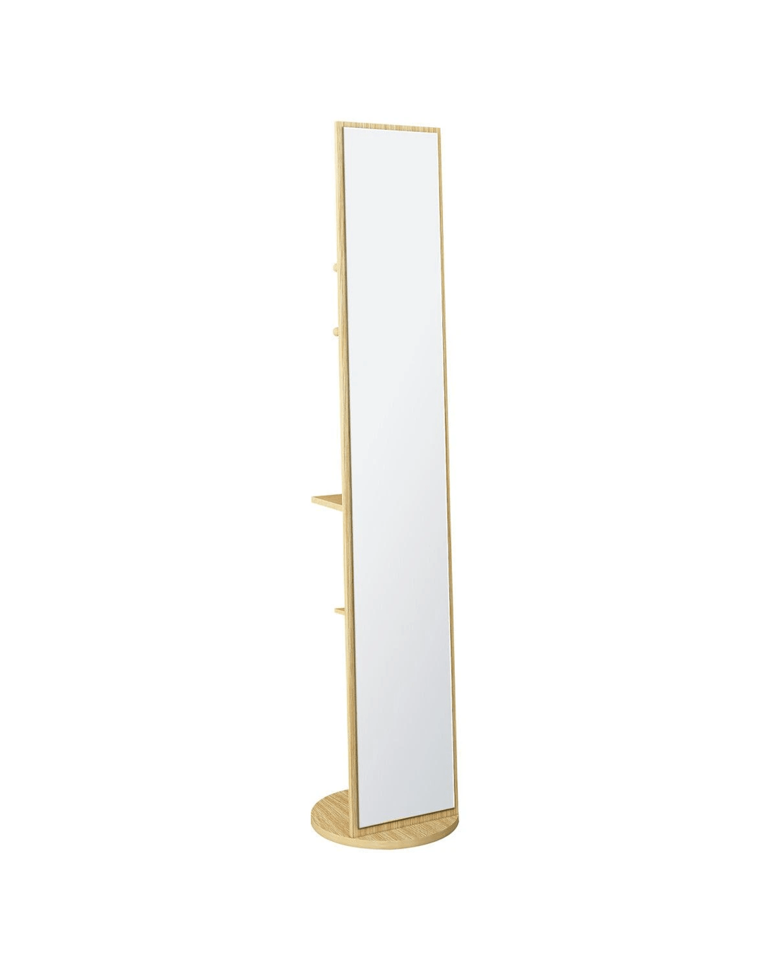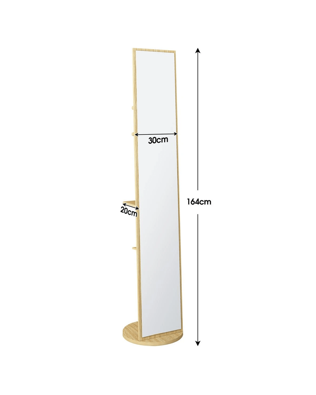 Amplify your dressing area with this large full-length mirror. Crafted using heavy-duty PB board and HD shatterproof glass, our floor mirror boasts unparalleled safety and durability and provides a flawless viewing experience for years to come. Also, it is user-friendly with easy cleaning and maintenance. Maximise space and optimise organisation with its rear storage hooks and shelves for your clothes, bags, shoes, and other accessories. Meanwhile, thanks to its large rotating base with double-layer thickness, the full-body mirror delivers unwavering support and ultimate convenience, allowing you to swivel the mirror and access your belongings easily. Versatile and practical, this remarkable piece enhances your daily routine and adds a touch of sophisticated elegance to your living environment.