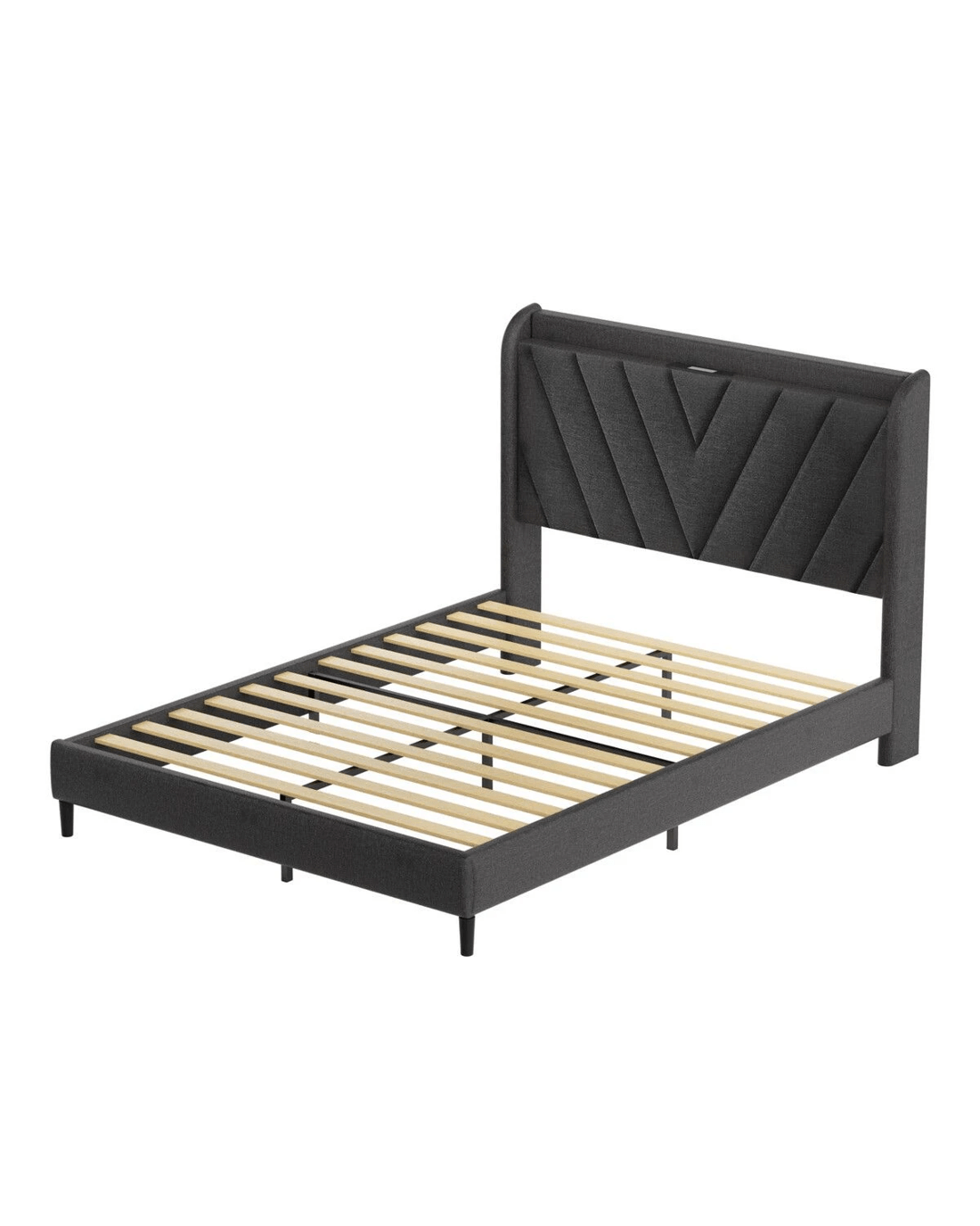 Turn your bedroom into a relaxing retreat with this Queen Bed Frame Mattress Base and Headboard. Adding style and practicality, the cosy built-in LED lighting enhances the room's ambience, creating a warm, inviting glow and improving nighttime visibility. Experience unmatched convenience with the built-in charging ports, featuring both USB and Type-C connections, designed to keep your devices powered without the clutter of cables. The upholstered headboard, crafted with soft, breathable fabric and high-density foam, provides exceptional support for those leisurely moments spent reading or working in bed. The space-saving smart design offers generous under-bed storage, perfect for keeping your room neat and organised. Supported by a durable metal frame and reinforced wood slats, this bed promises long-lasting strength and stability. The clear, easy-to-follow assembly instructions ensure a hassle-free setup. Elevate your sleeping experience with a bed that truly caters to modern lifestyle needs.