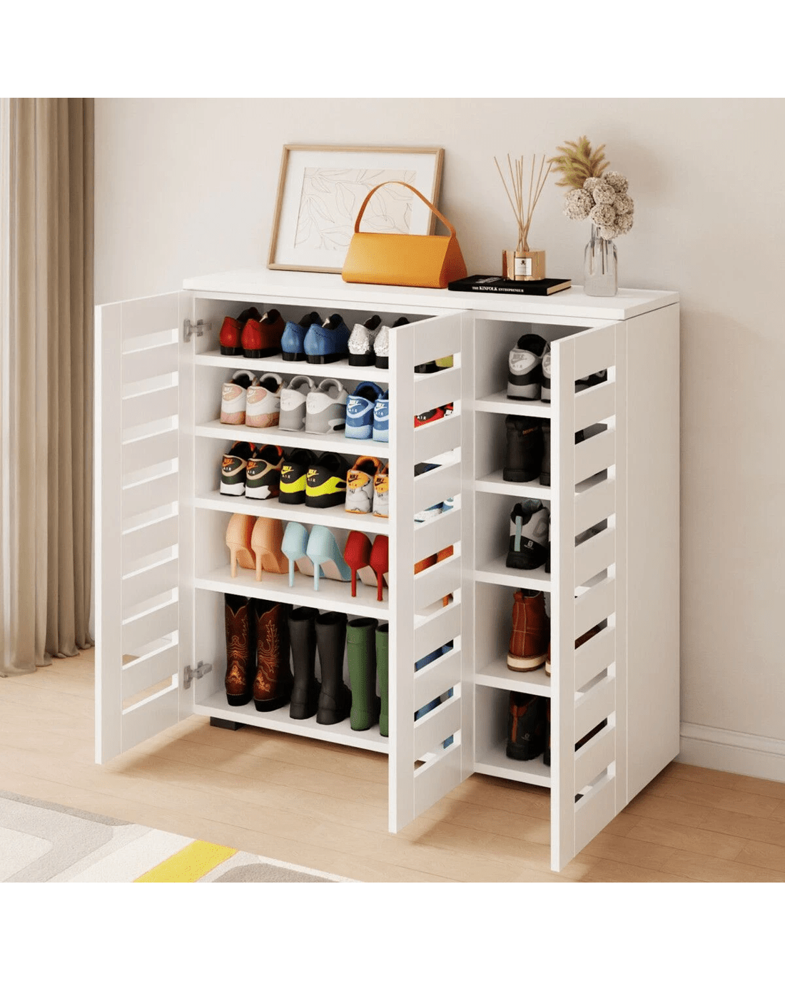 LUXSUITE Shoe Rack Storage Cabinet Wooden Narrow Slim Hallway Entryway Footwear Organiser Cupboard Unit 30 Pairs 3 Door