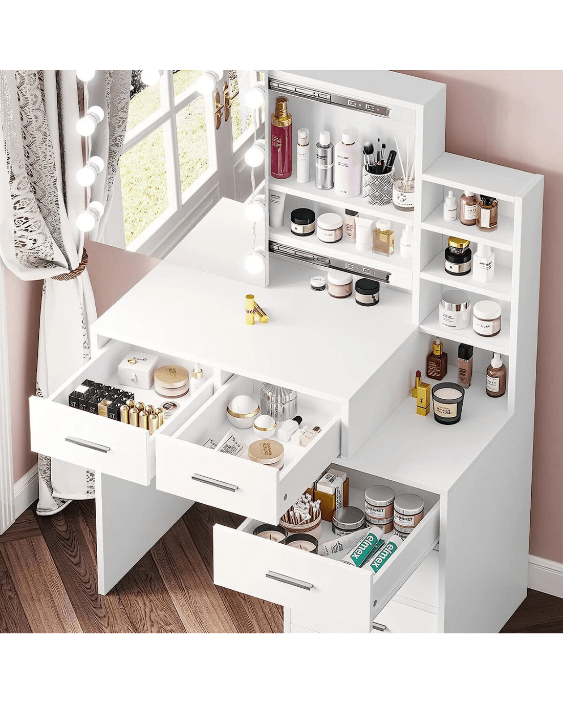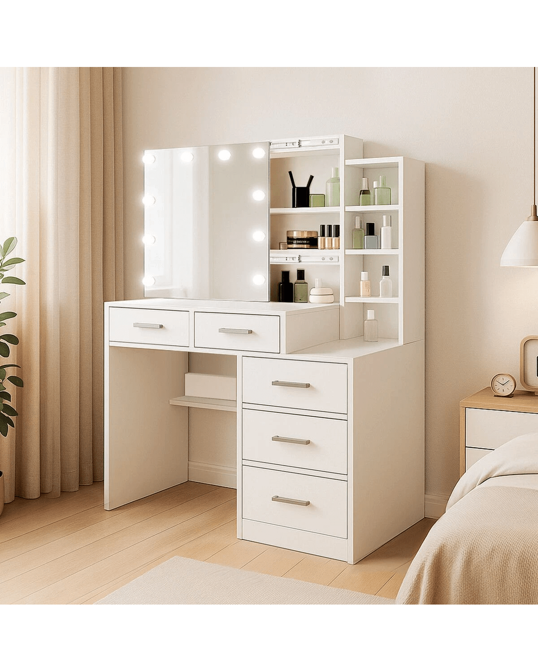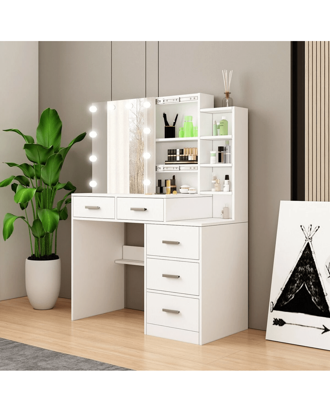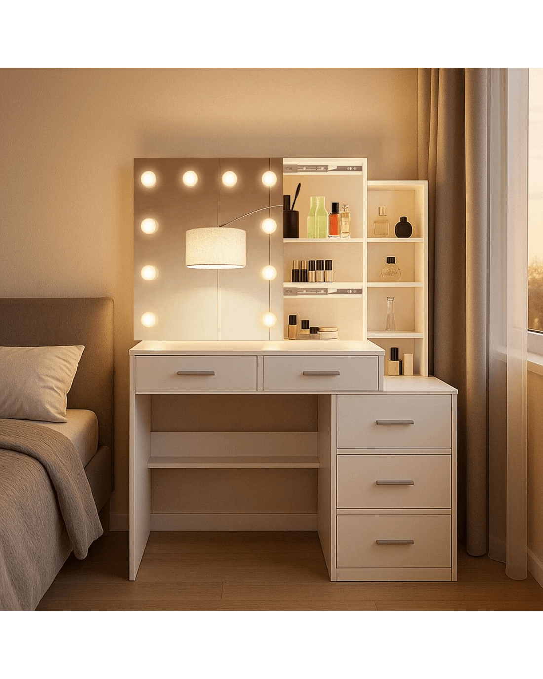 LUXSUITE Vanity Dressing Table Hollywood Makeup Mirror White