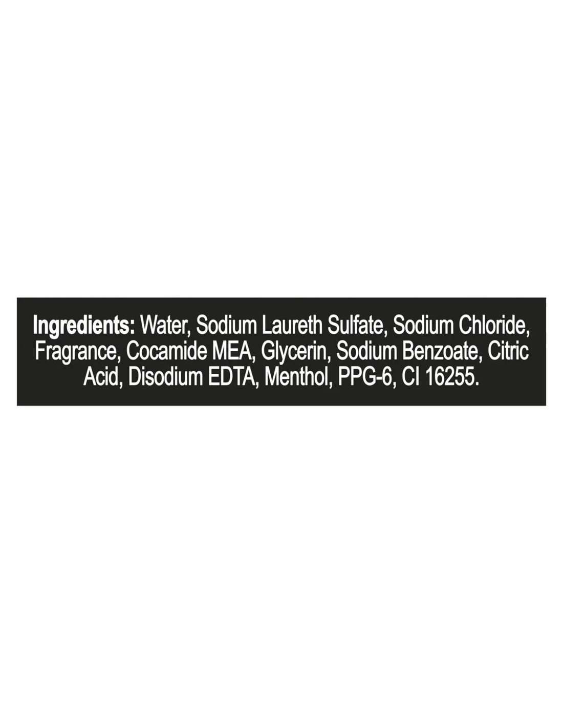 - Ingredients: Water, Sodium Laureth Sulfate, Sodium Chloride, Fragrance, Cocamide MEA, Glycerin, Sodium Benzoate, Citric Acid, Disodium EDTA, Menthol, PPG-6, CI 16255