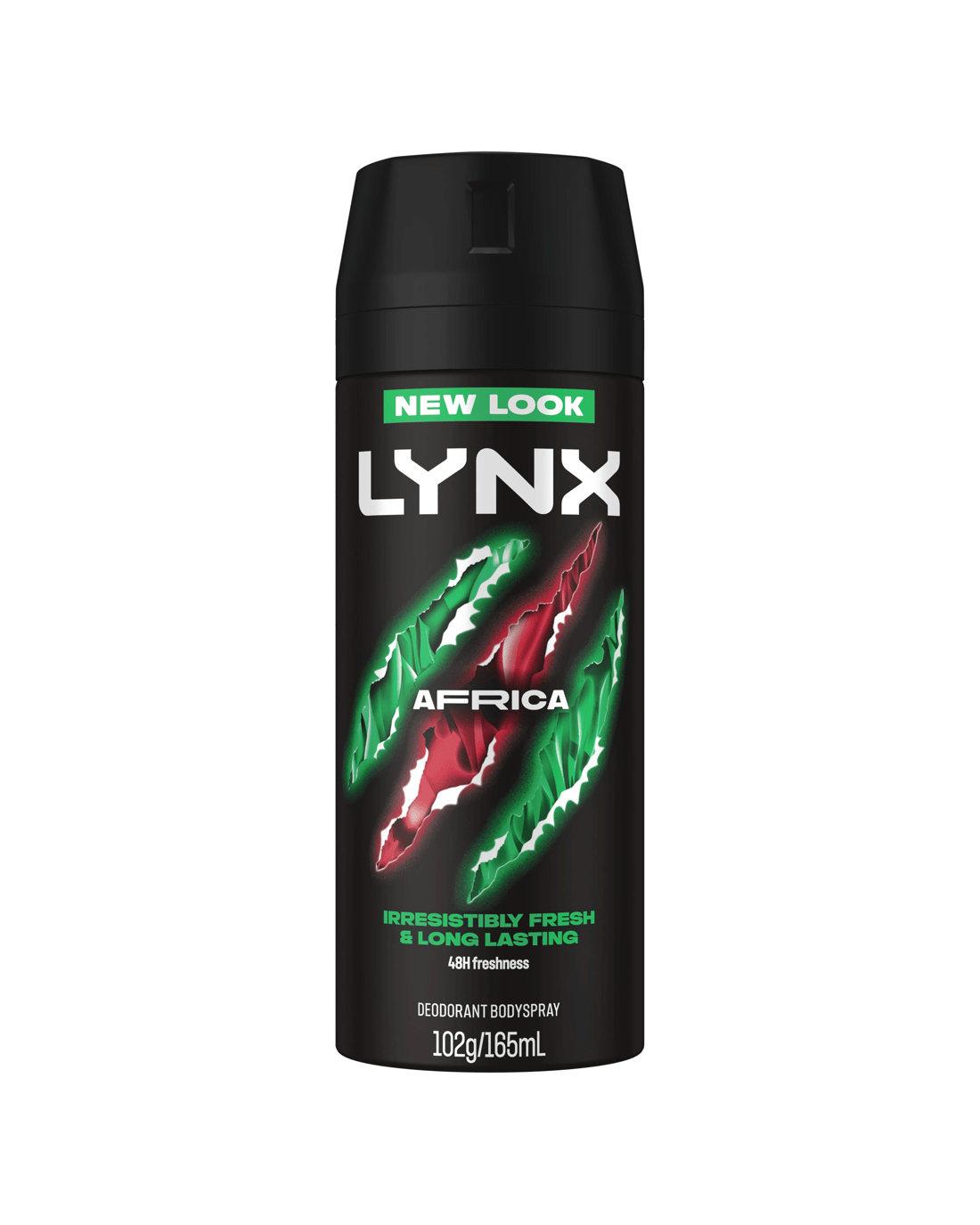 At LYNX, we’re committed to producing styling and grooming products that help guys look better, smell better and feel more confident when taking on the world. We exist to help Australian and New Zealand guys express themselves authentically. For great protection, give the LYNX Africa aerosol can a good shake, twist the cap and spray your underarms and body - recycle the can when empty.