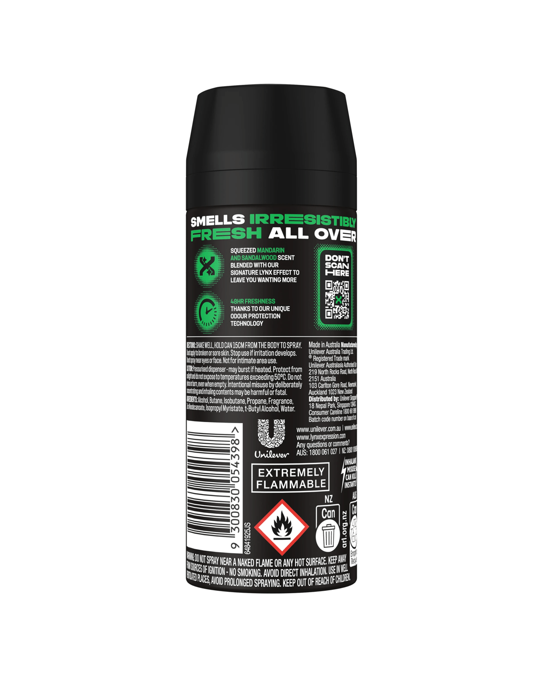 LYNX Africa is Australia’s #1 male deodorant fragrance - you don’t want to be the one missing out! Our zinc technology fights odour and odour-causing bacteria* to give you 48-hour protection and keep you cool no matter where the heat’s coming from. 100% fresh fragrance means you’ll smell irresistible - even when you sweat. LYNX Africa Deodorant Body Spray will give you all-day confidence so you can forget about odour and focus on what really matters.