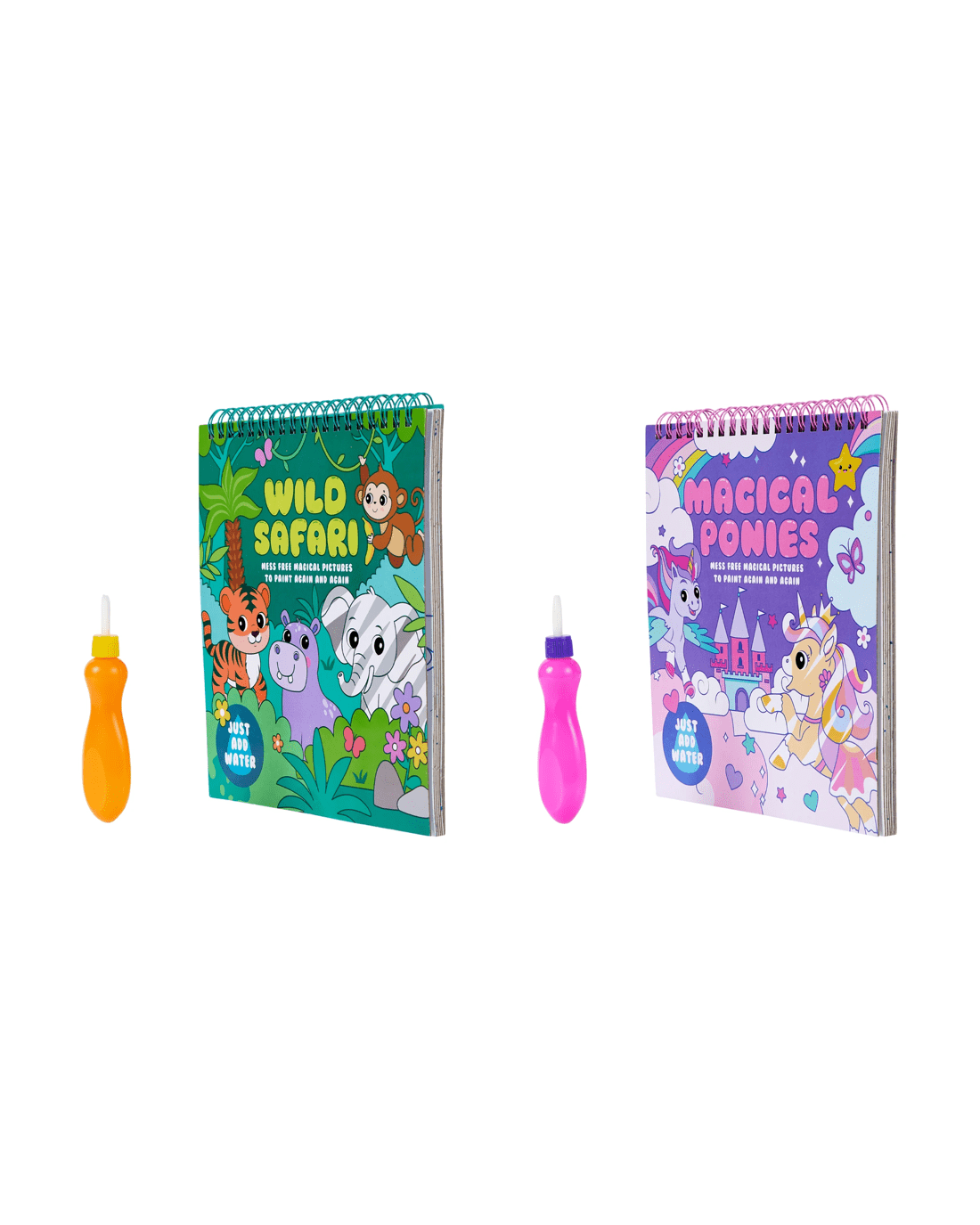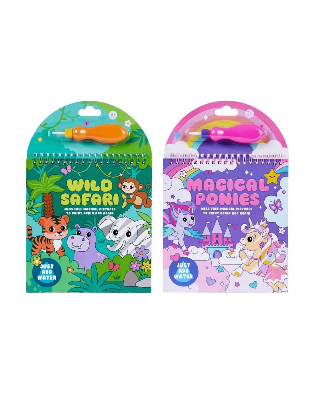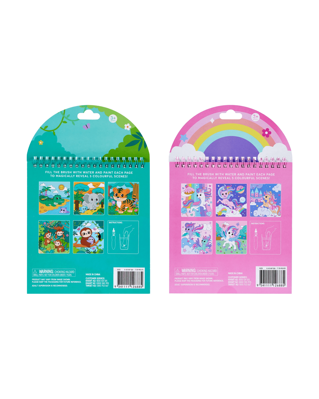 - Fill the brush with water and paint each page to magically reveal 5 colourful scenes!