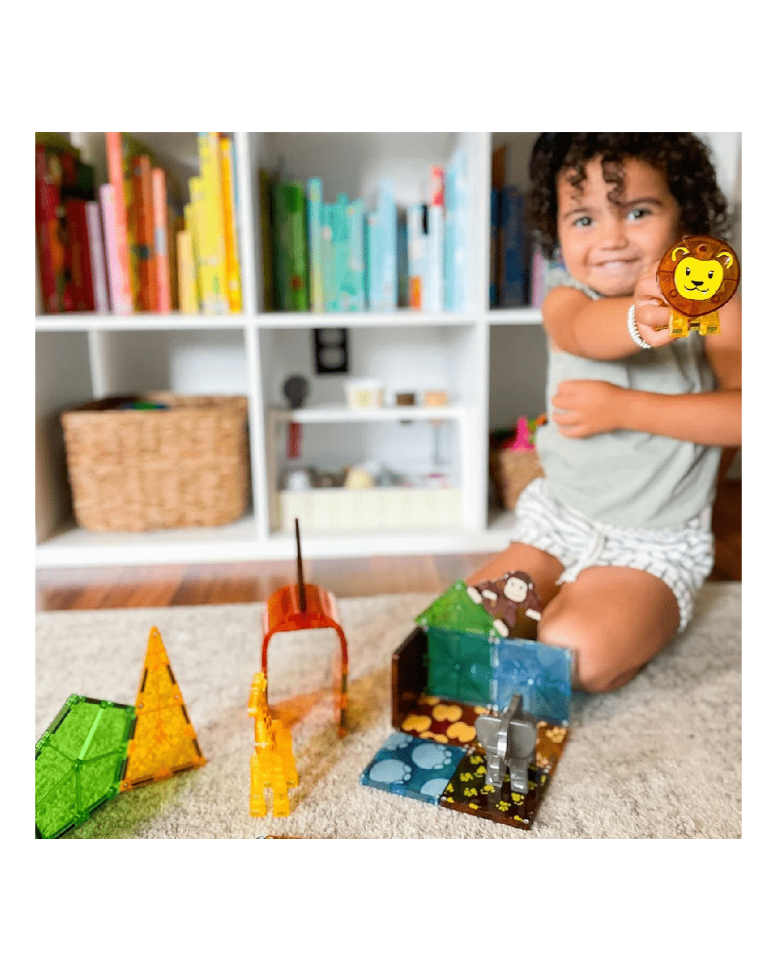 - It comes with 25 tiles in a variety of shapes and colours, featuring a safari animals theme.