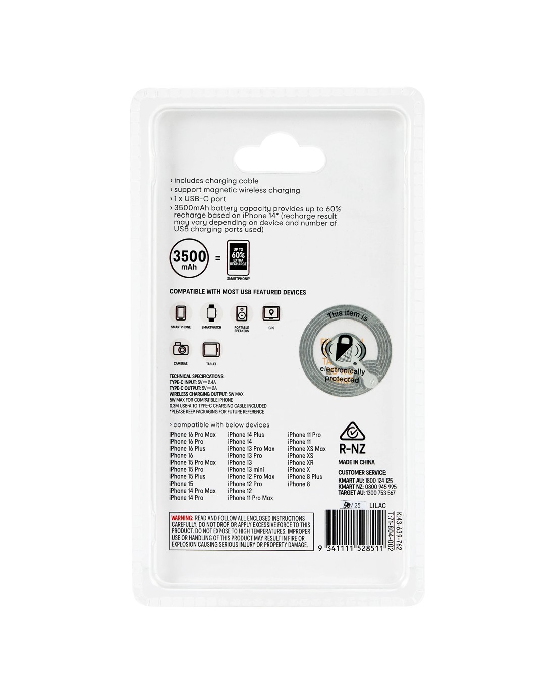Sold by KmartMagnetic Mini Powerbank - Lilac
