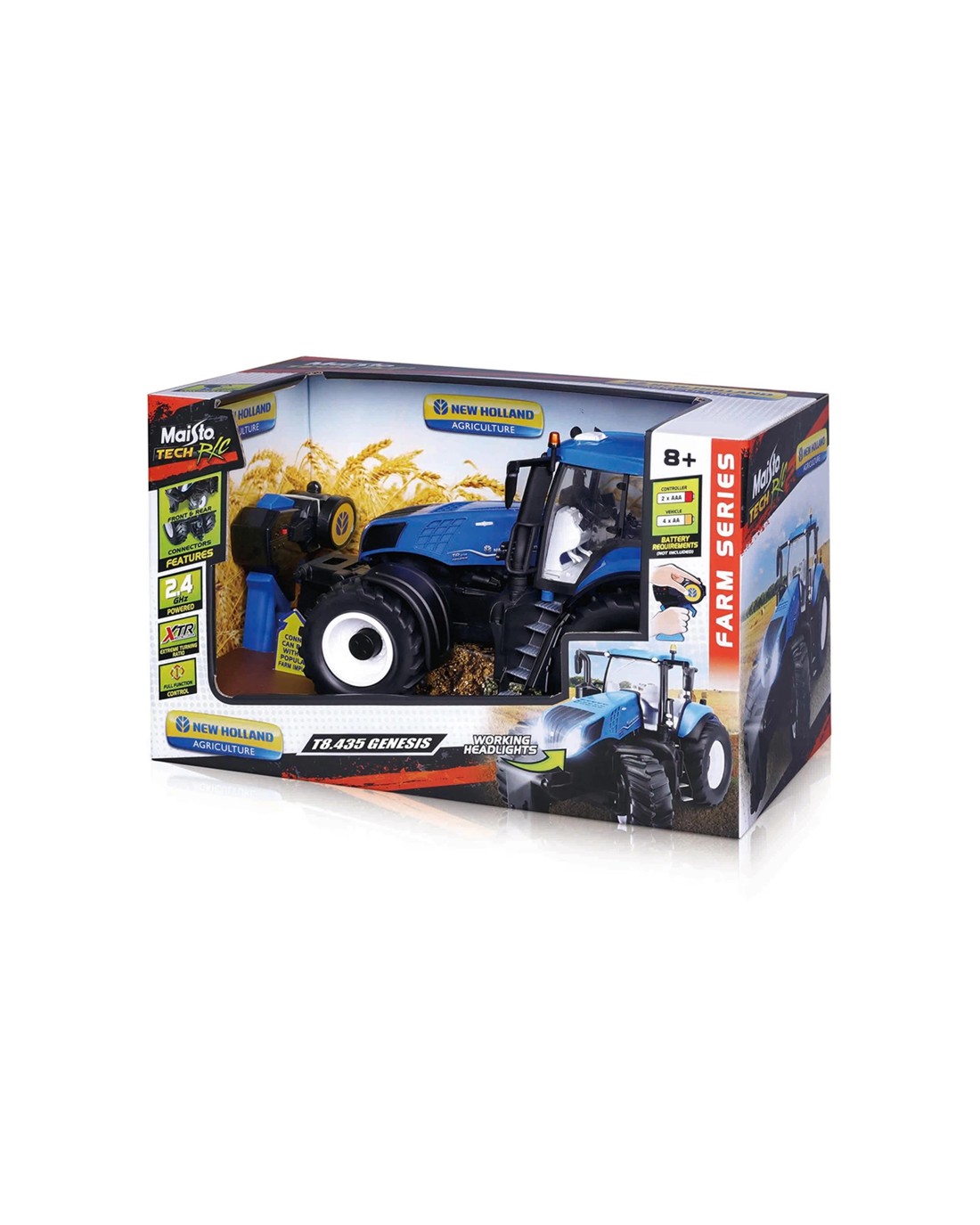 The Maisto Tech RC New Holland Farm Tractor Vehicle is designed for children aged 8 and above who enjoy realistic remote control vehicles. This detailed 1:16 scale tractor offers full function control, making it easy for kids to steer and operate, providing an engaging and authentic play experience.