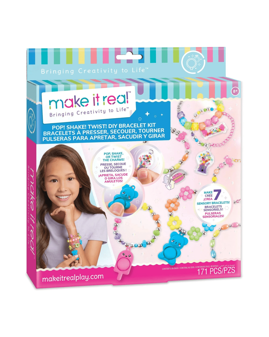 Unleash your creativity with the Make It Real DIY Sensory Bracelets kit, designed to inspire and entertain. This delightful set invites kids to design their own fun, candy-inspired bracelets with colourful beads and charming tactile accessories. Let your imagination run wild as you shake, twist and pop on unique charms, crafting seven unique bracelets each brimming with character. Ideal for gifting or enjoying with friends, this kit promises hours of satisfying play and self-expression. It's a brilliant way for young makers to develop fine motor skills and discover the joy of hands-on creativity. Grab yours today and start your own bracelet-making adventure.