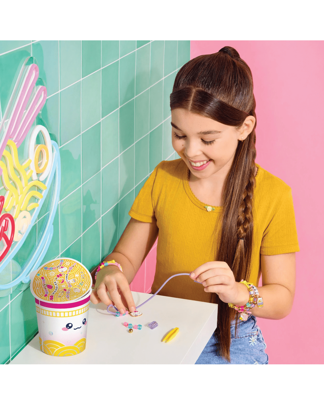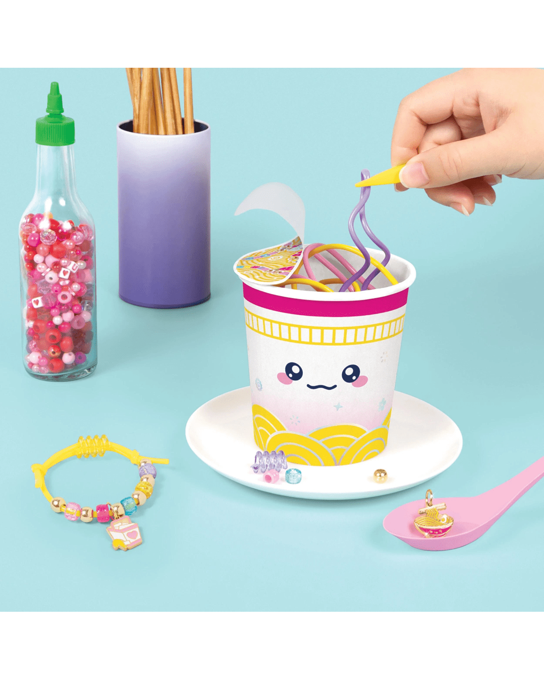 Ignite your creativity with the Make It Real Knot Noodles Bracelet Kit, the perfect treat for anyone who loves crafting with a playful twist. Inspired by the charm of instant noodle pots, this delightful kit includes everything needed to design five kawaii noodle-themed bracelets. From tweezers that mimic the feel of chopsticks to colourful beads and adorable food-themed charms, every piece adds a touch of fun and imagination. Designed to spark joy in ramen fans and creative spirits alike, this kit turns jewellery-making into a light-hearted, satisfying activity. Share the happiness with friends or gift it to a budding jewellery designer – either way, it’s a recipe for smiles. Don’t wait – pick up your kit and start crafting your own deliciously cute accessories today.Features