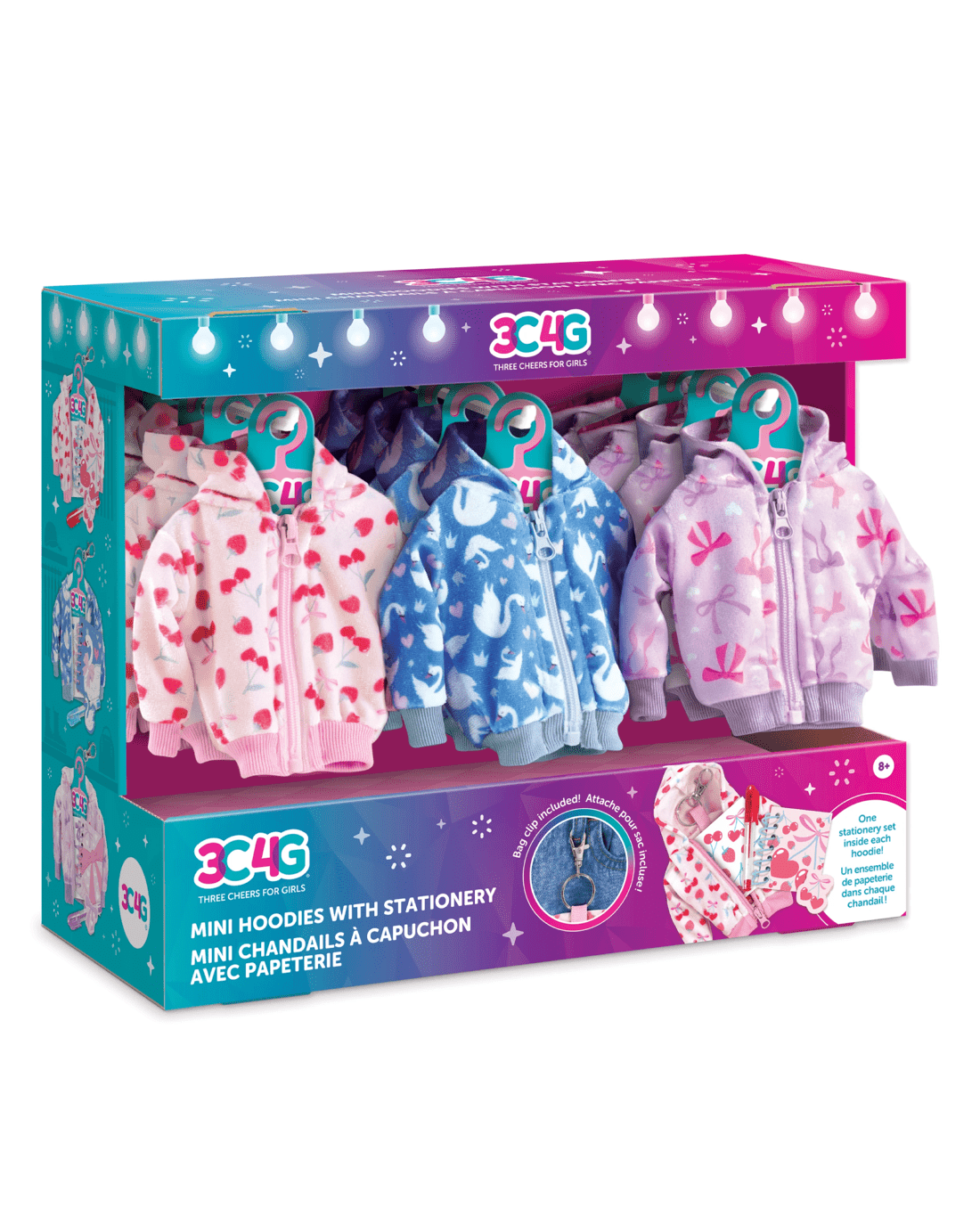 Get ready to add a splash of fun to your day with the Make It Real Mini Hoodies With Stationery. Each adorable mini hoodie unzips to reveal a delightful set of stationery essentials, including a mini notebook, gel pen, sticker sheet and a quirky die-cut eraser. The hoodie is even designed to fit an 11.5 inch fashion doll, making it perfect for imaginative play and creative adventures. Great for children aged 8 and up, this playful surprise brings joy to both writing and collecting. Treat your child, or yourself, to a pocket-sized burst of creativity and style. Grab yours today and unlock endless moments of charm and inspiration.Features
