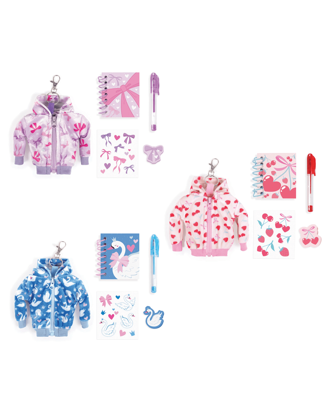 - Includes 1 mini hoodie, 1 mini notebook, 1 mini sticker sheet, 1 die-cut eraser, 1 mini gel pen
