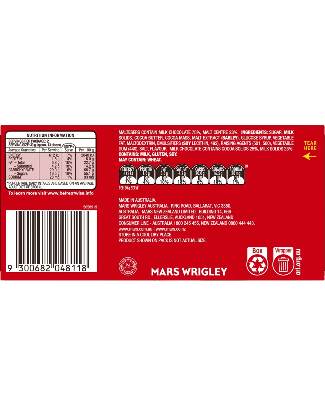 - Allergen information: Contains milk, gluten and soy. May contain wheat.