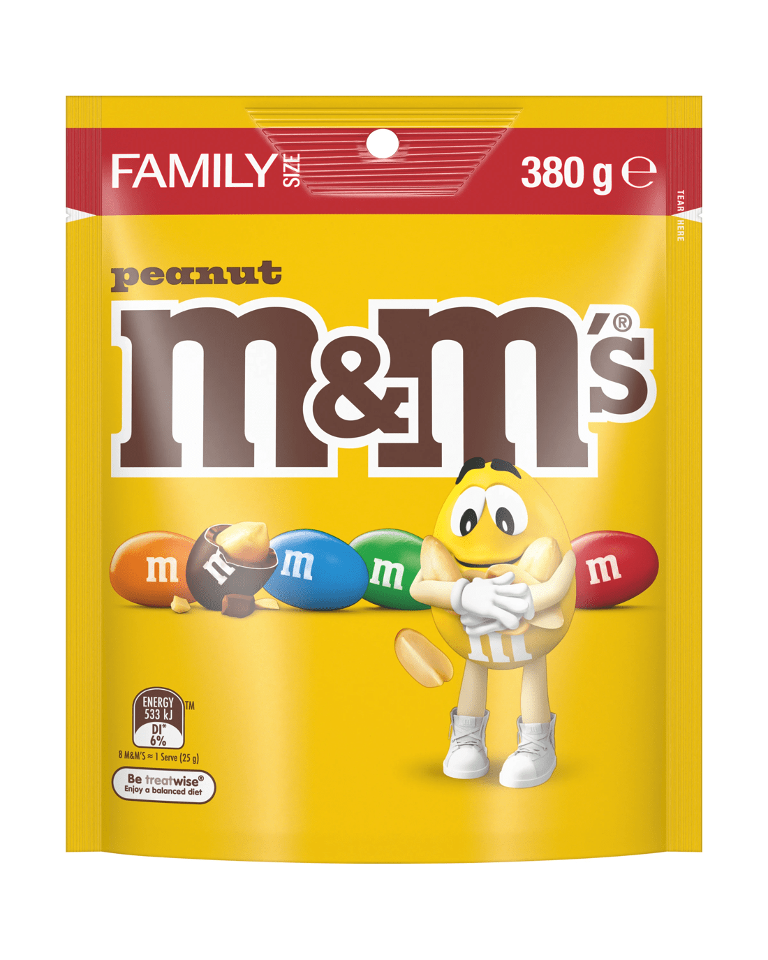 - Includes a 380g chocolate bag of M&M’s peanut milk chocolate bite size snacks