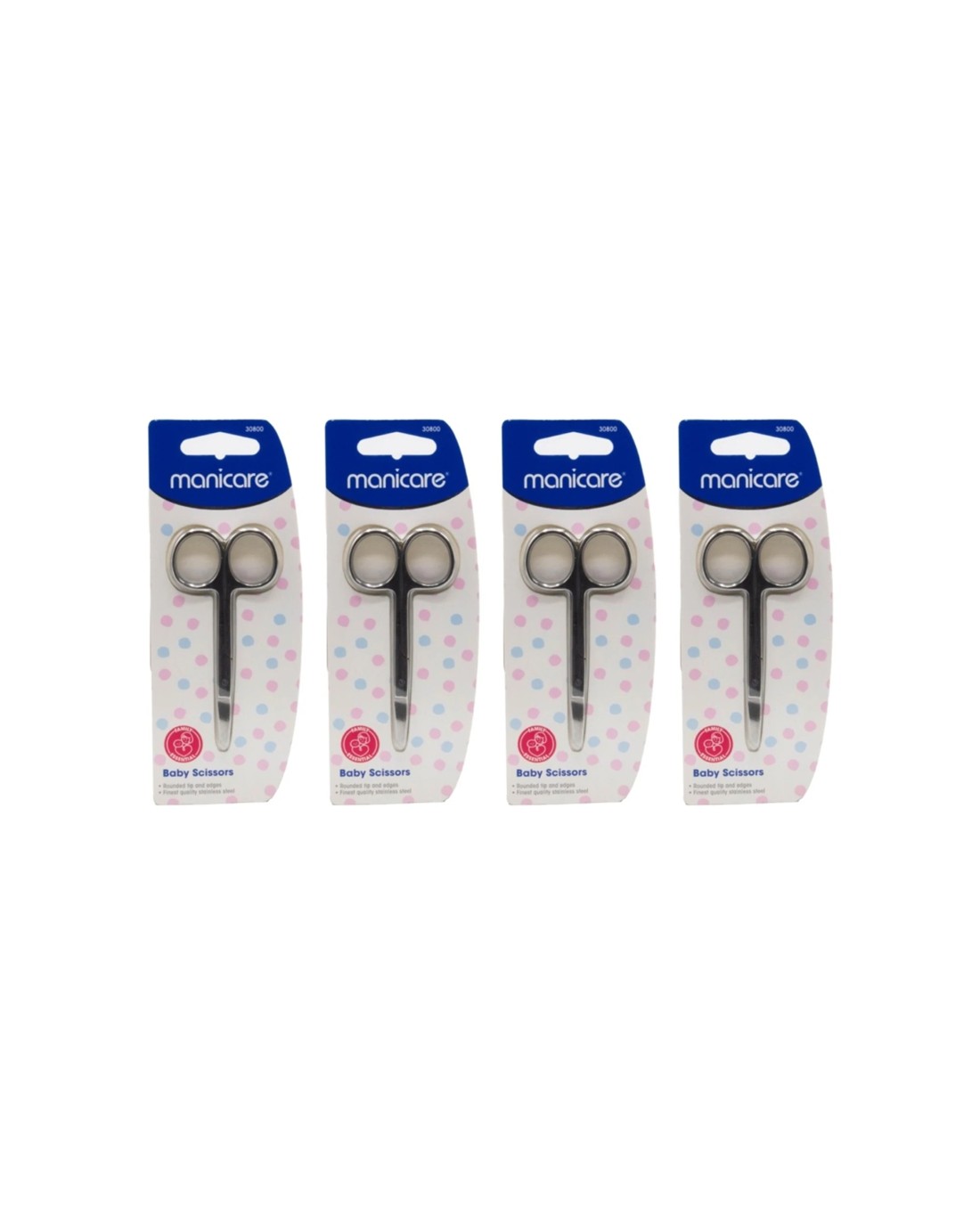 Manicare 4PK Baby Scissors Safe Nail Trimming Stainless Steel Rounded Tips - Silver