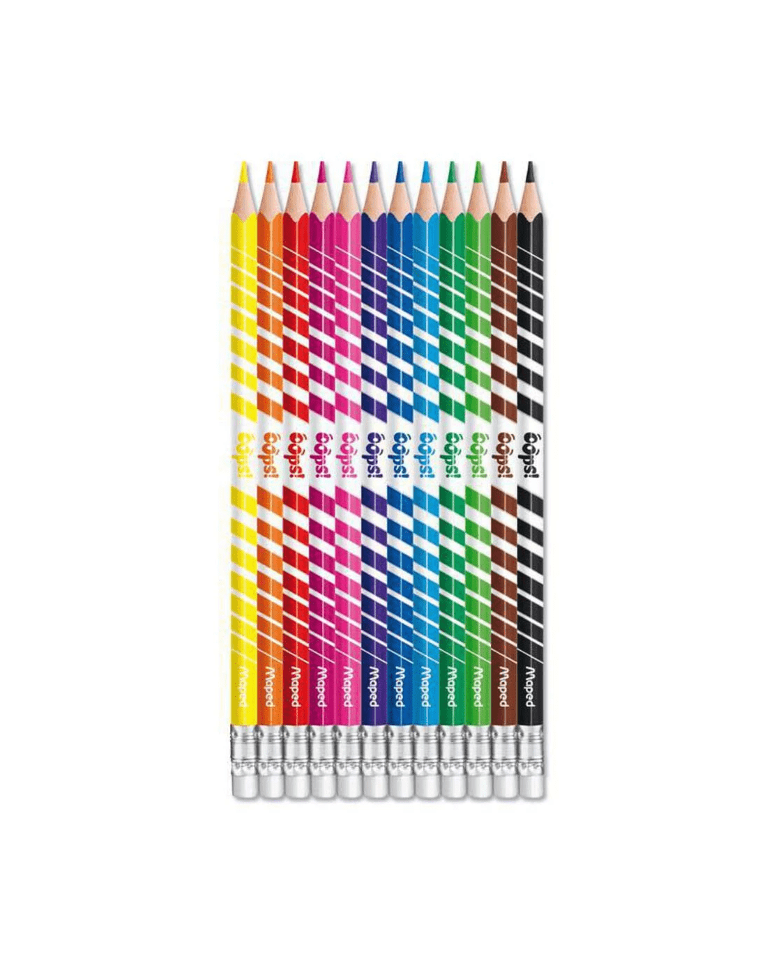 These Maped Oops Coloured Pencils provide bright, vibrant results. Each pencil has an eraser tip for fixing up mistakes, while the triangular-shaped barrel provides comfort.