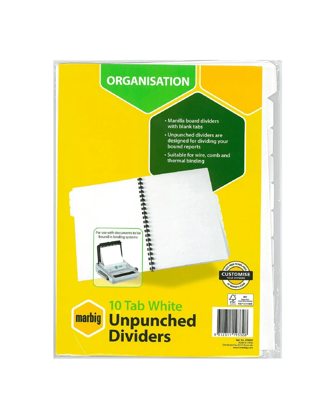 Sold by OfficeworksMarbig 10 Tab Unpunched Manila Dividers White