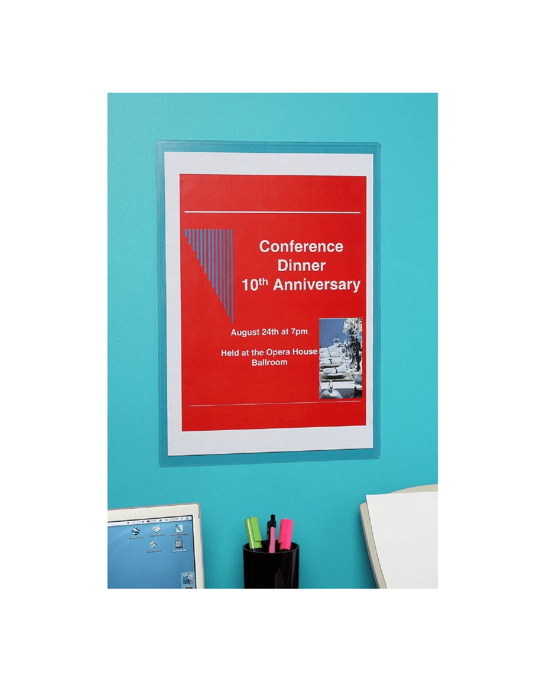 This Marbig A3 Wall Mount PVC Document Protector provides excellent protection for certificates, menus and other displays. This protector is sealed on 3 sides so you don't have to worry about your documents falling out. It also comes with adhesive backing strips so that you can easily mount your display material on a wall.