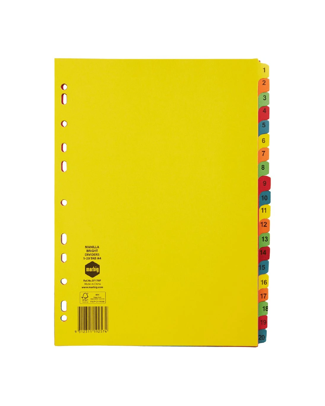 Sold by OfficeworksMarbig A4 1-20 Dividers Bright Colours