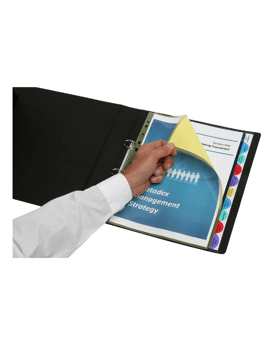 - The divider is perfect to use in a binder or filing system that uses sheet protectors as they are wider than usual.