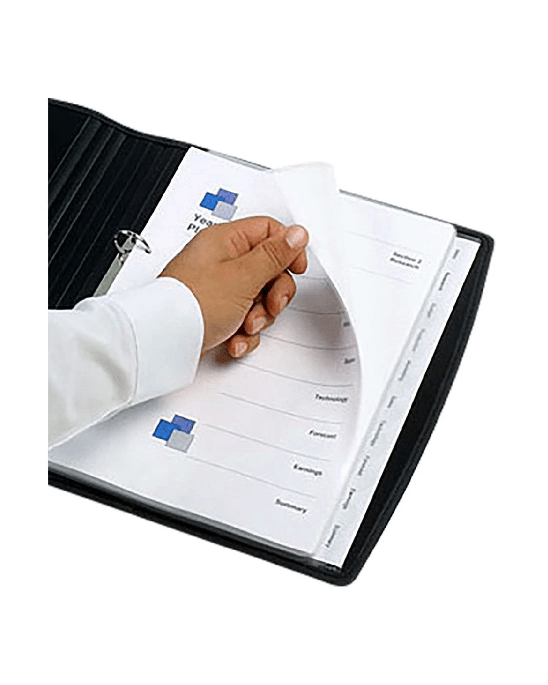 - Keep your headers in view from anywhere in the binder thanks to the see through tabs.