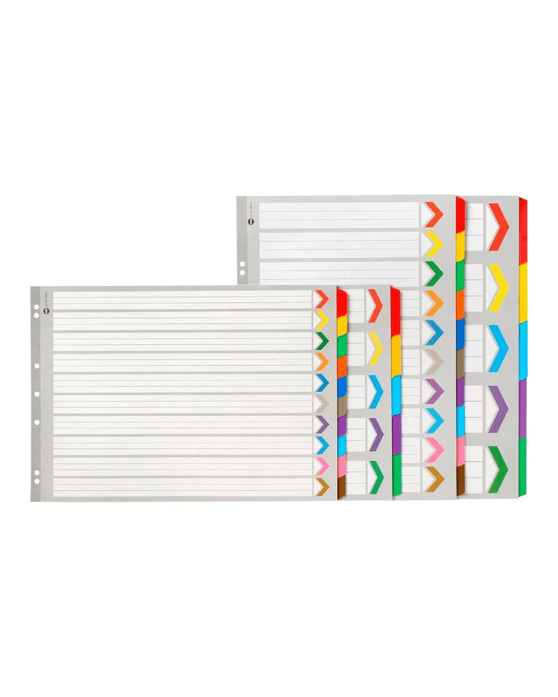 - The dividers are white with brightly coloured tabs.