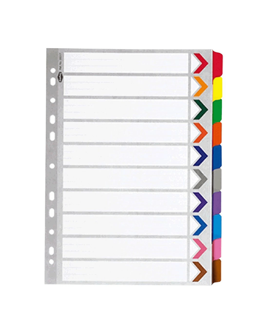 - The dividers are white with brightly coloured tabs.