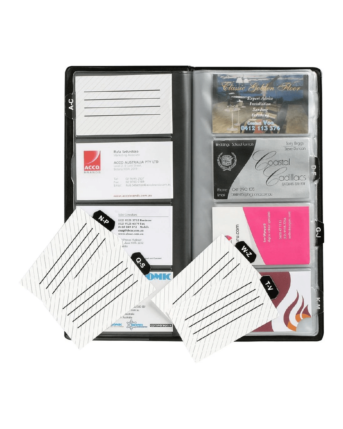 This Marbig Standard Business Card Holder has a slimline design which makes it ideal for carrying in your bag or amongst your files. It features an A to Z index so you can quickly and easily find the card you need. The cards are stored in plastic pockets enabling you to insert and remove them when necessary.