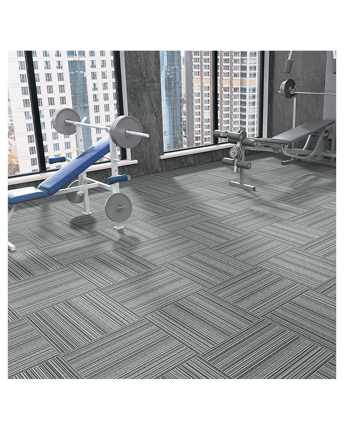 Walk on your floor gym flooring carpet tiles week in, week out. If it gets dirty just vacuum. You can always lift them out if it is a big spill. So easy to care for. Much easier to manage than co-workers.