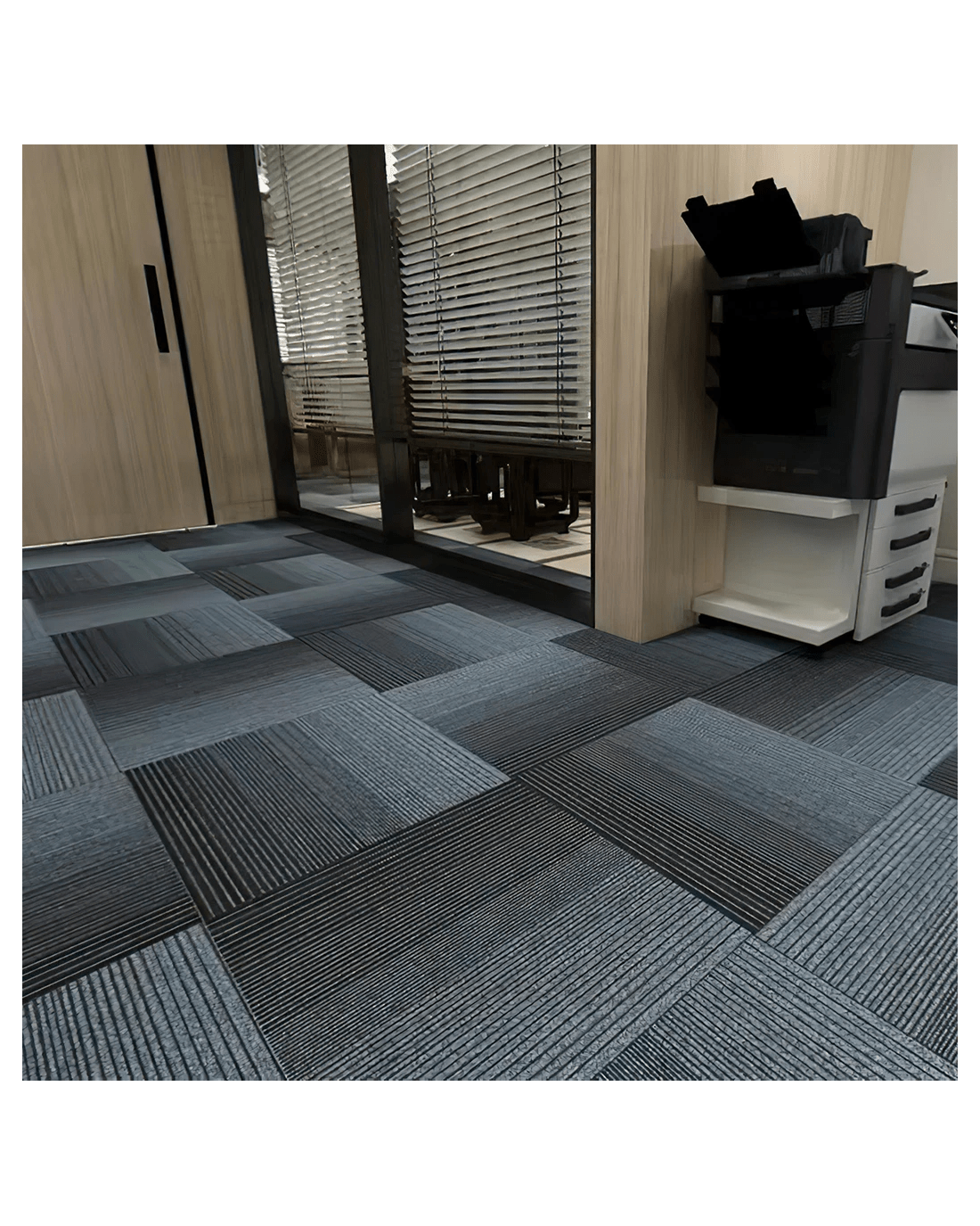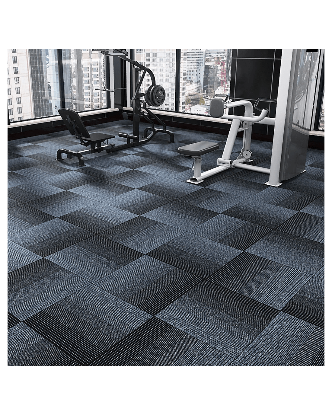 Walk on your floor gym flooring carpet tiles week in, week out. If it gets dirty just vacuum. You can always lift them out if it is a big spill. So easy to care for. Much easier to manage than co-workers.