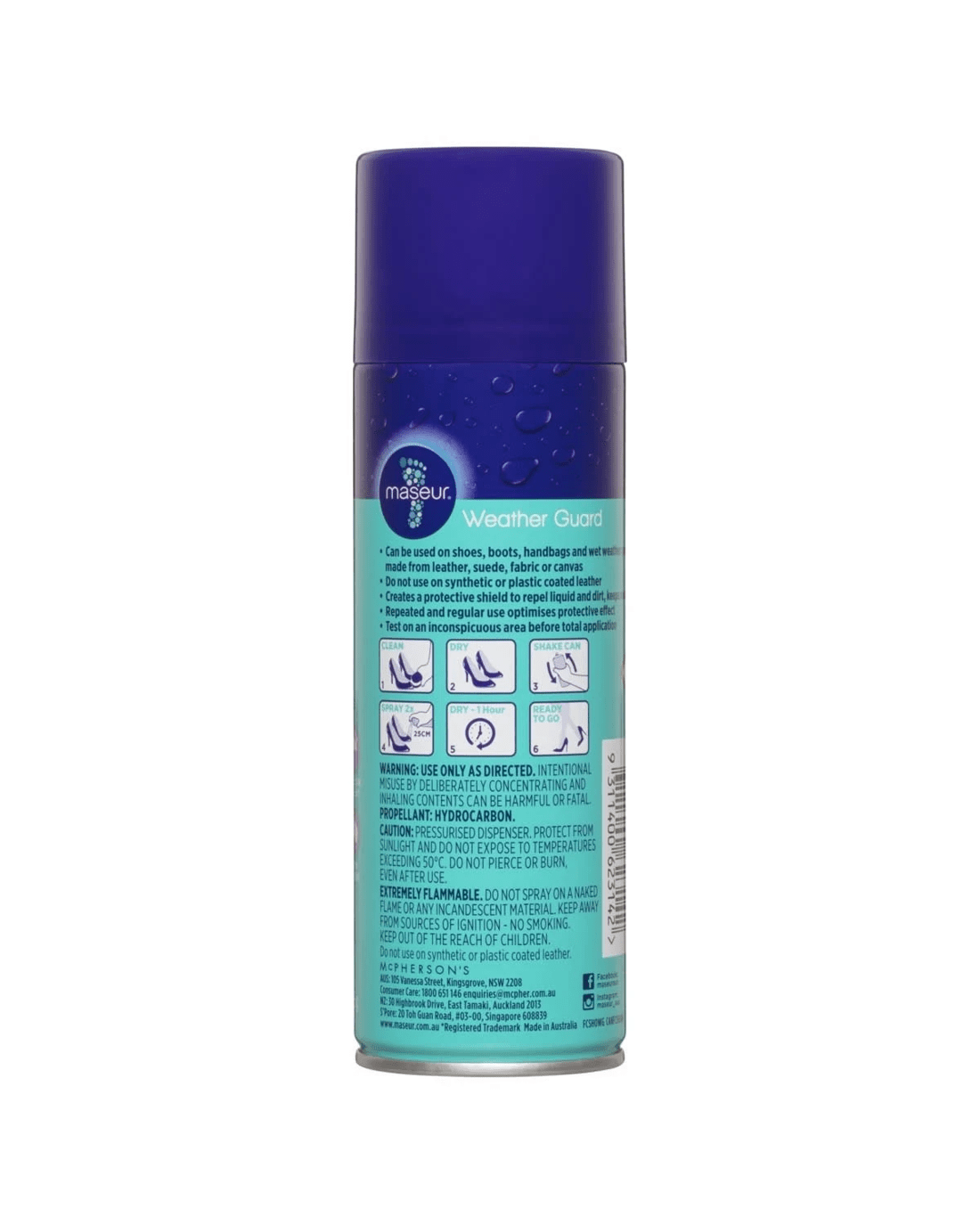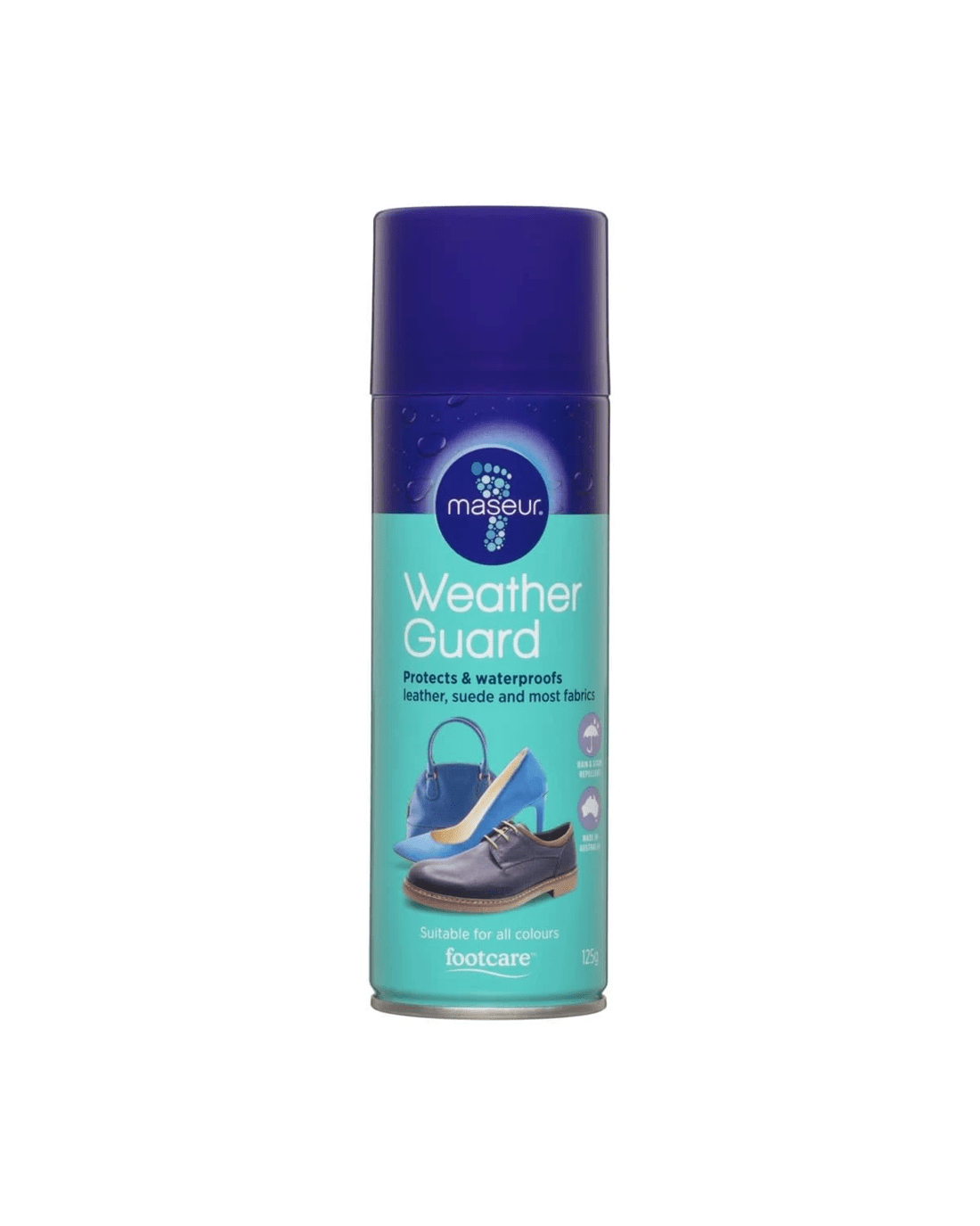 Maseur Footcare Weather Guard protects and waterproofs leather, suede and most fabrics.