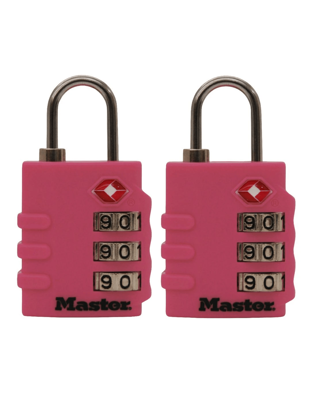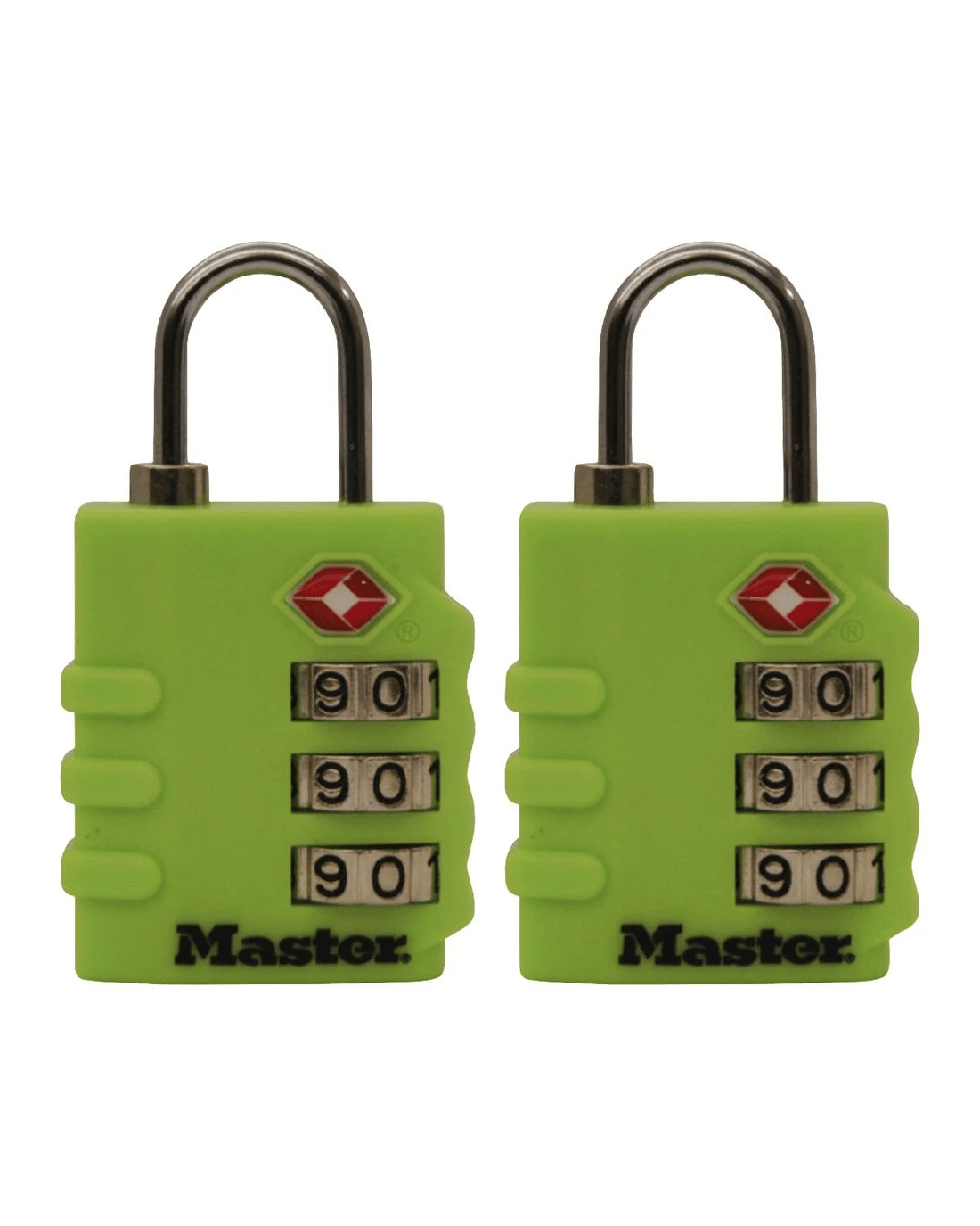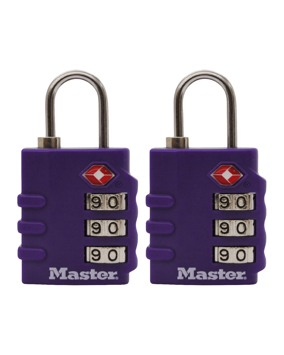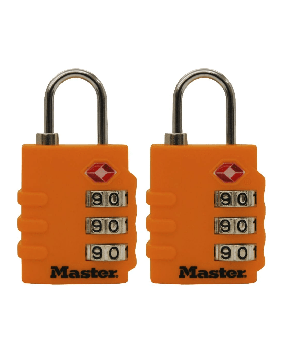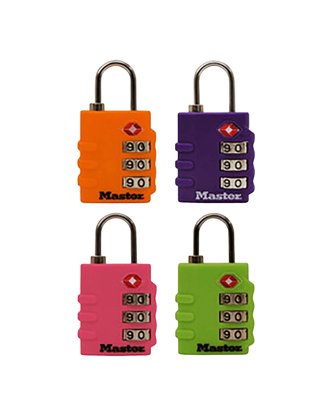 These Master Lock TSA Luggage Padlocks feature a 35mm wide bright color body for simple baggage identification. The 3mm diameter shackle is 19mm long and made of steel, offering resistance to cutting and sawing. Transportation Security Administration (TSA) screeners can open, inspect and relock bags locked with a TSA-Accepted lock. Lock your checked baggage with the lock TSAscreeners won’t cut!