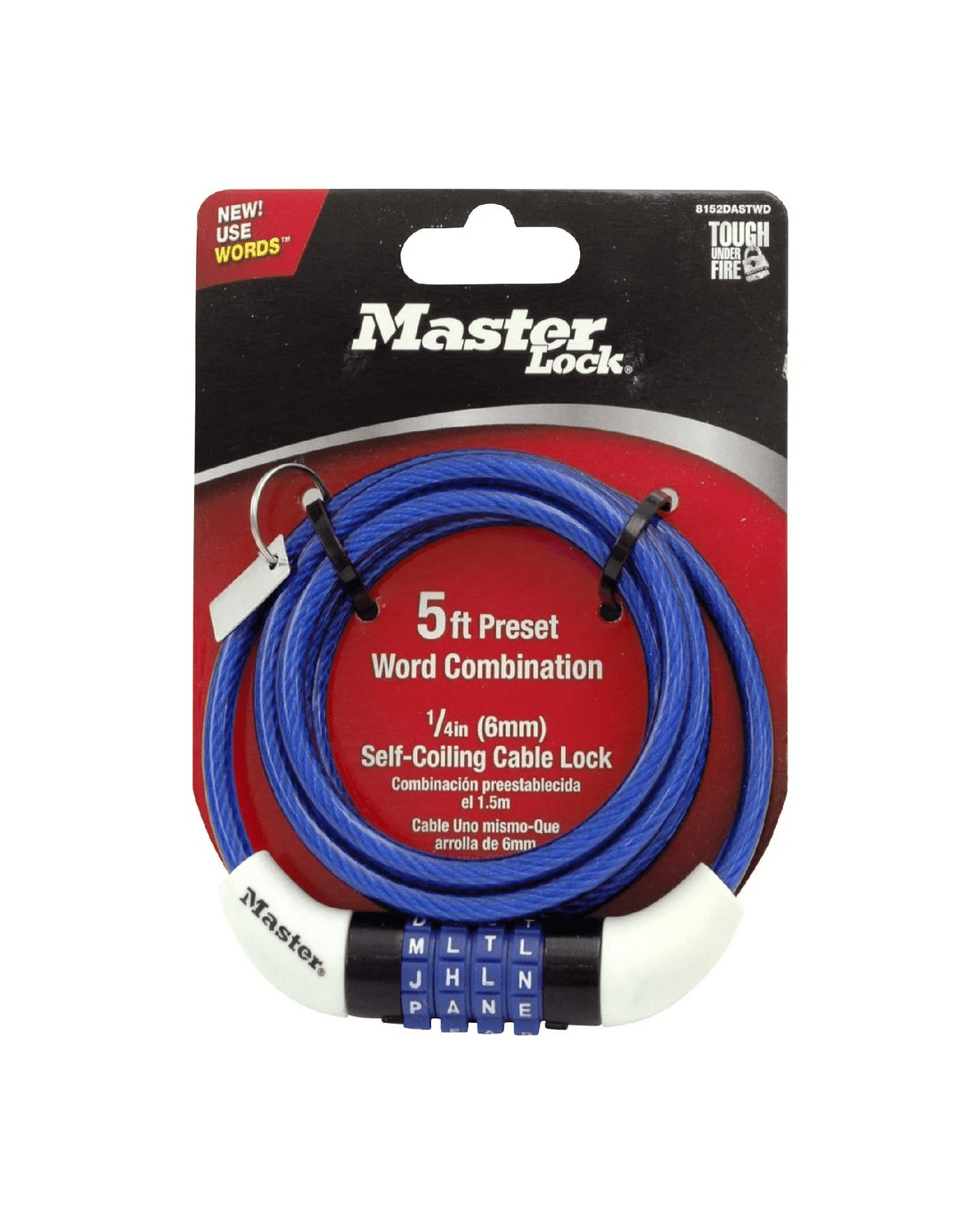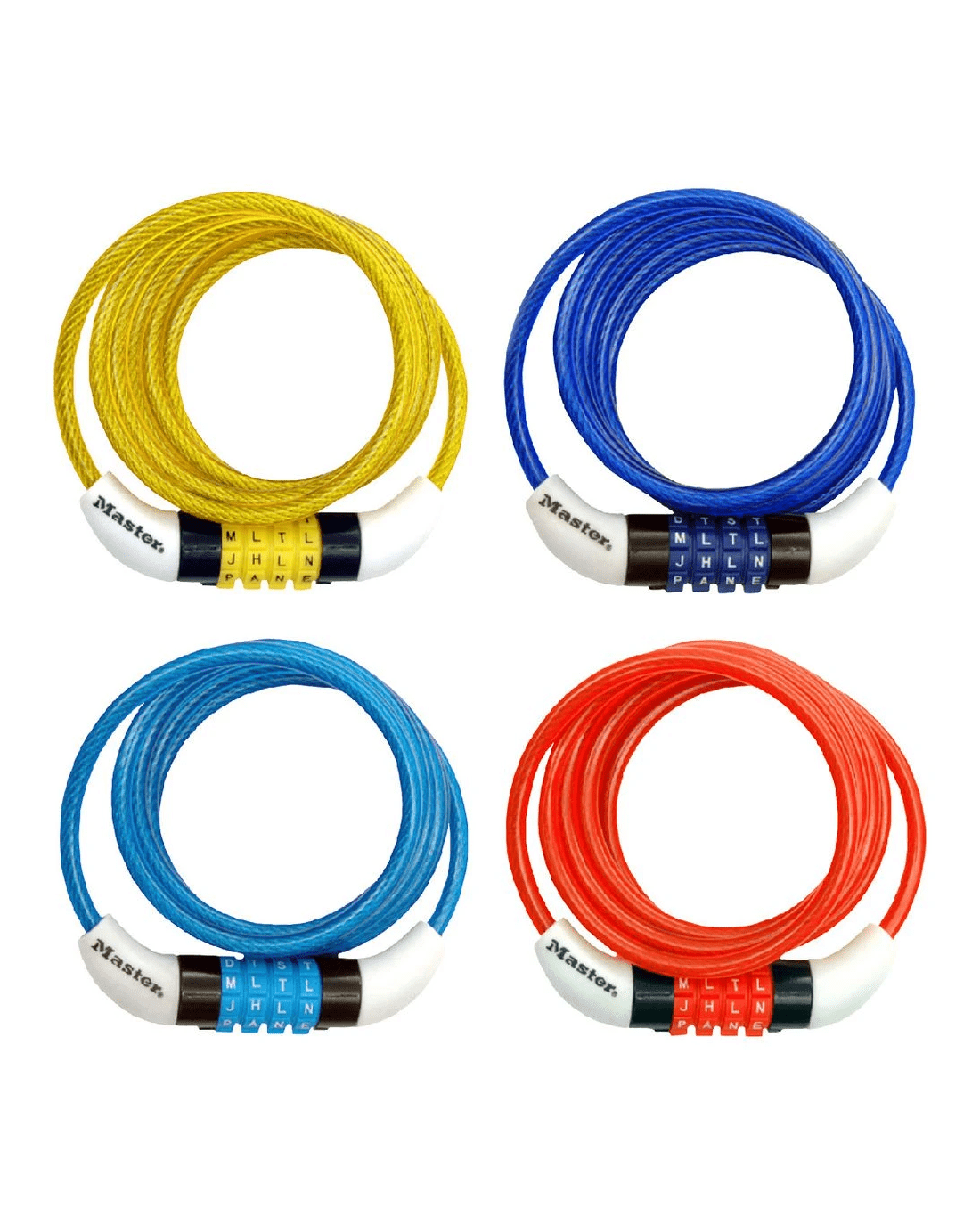This Master Lock Word Cable Lockk is 1.5m long and features a 6mm diameter braided steel for maximum strength and flexibility. The protective vinyl coating protects against scratches and 4 dial combination security offers keyless convenience. The bright colors simplify identification.