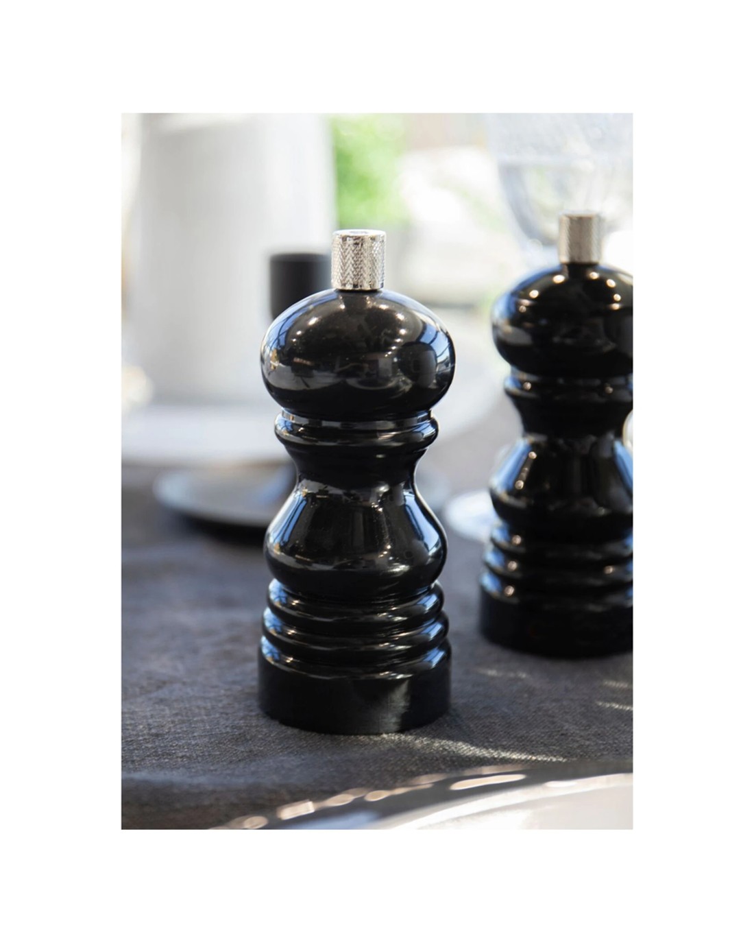 With its dramatic black finish and traditional capstan shape, this small MasterCraft salt or pepper mill takes a classic design and gives it a statement-making look. At 12 cm (4½ inches) tall, it’s eye-catching and practical.