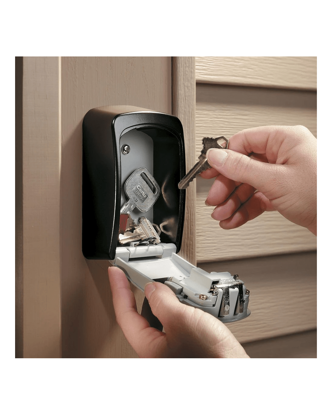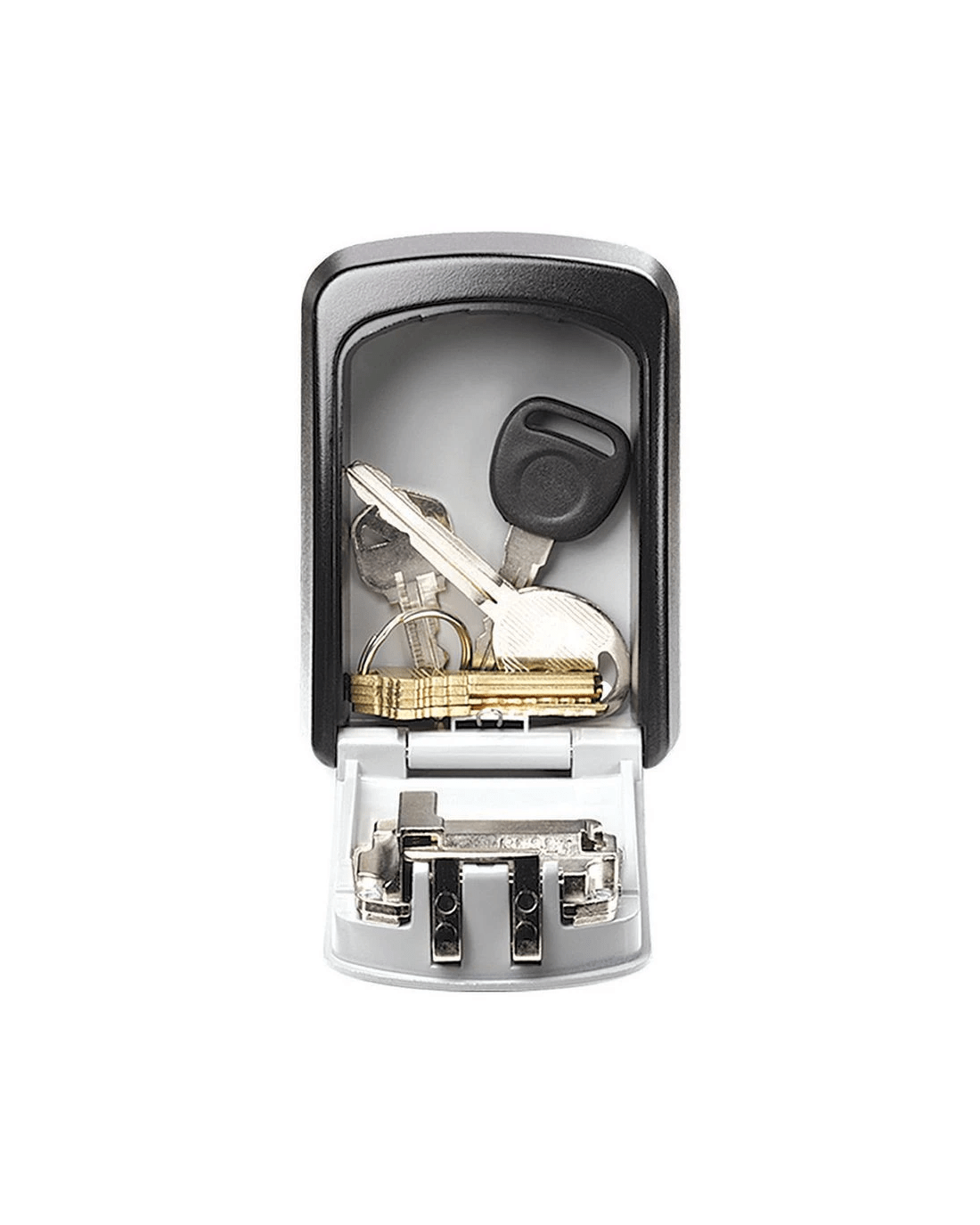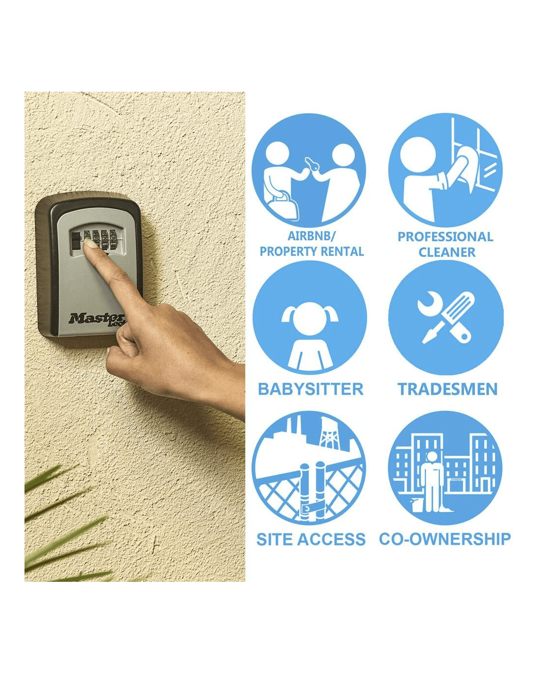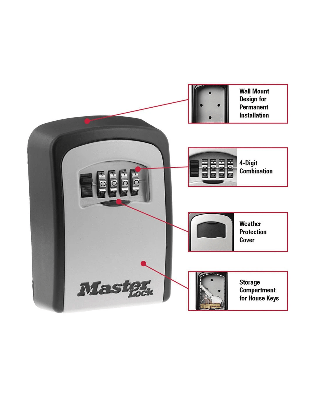 The Master lock Medium Combination Wall Mount Key Safe allows you to securely store keys or access cards. The wall mount design offers permanent installation. It unlocks via a 4-digit combination for keyless access convenience.