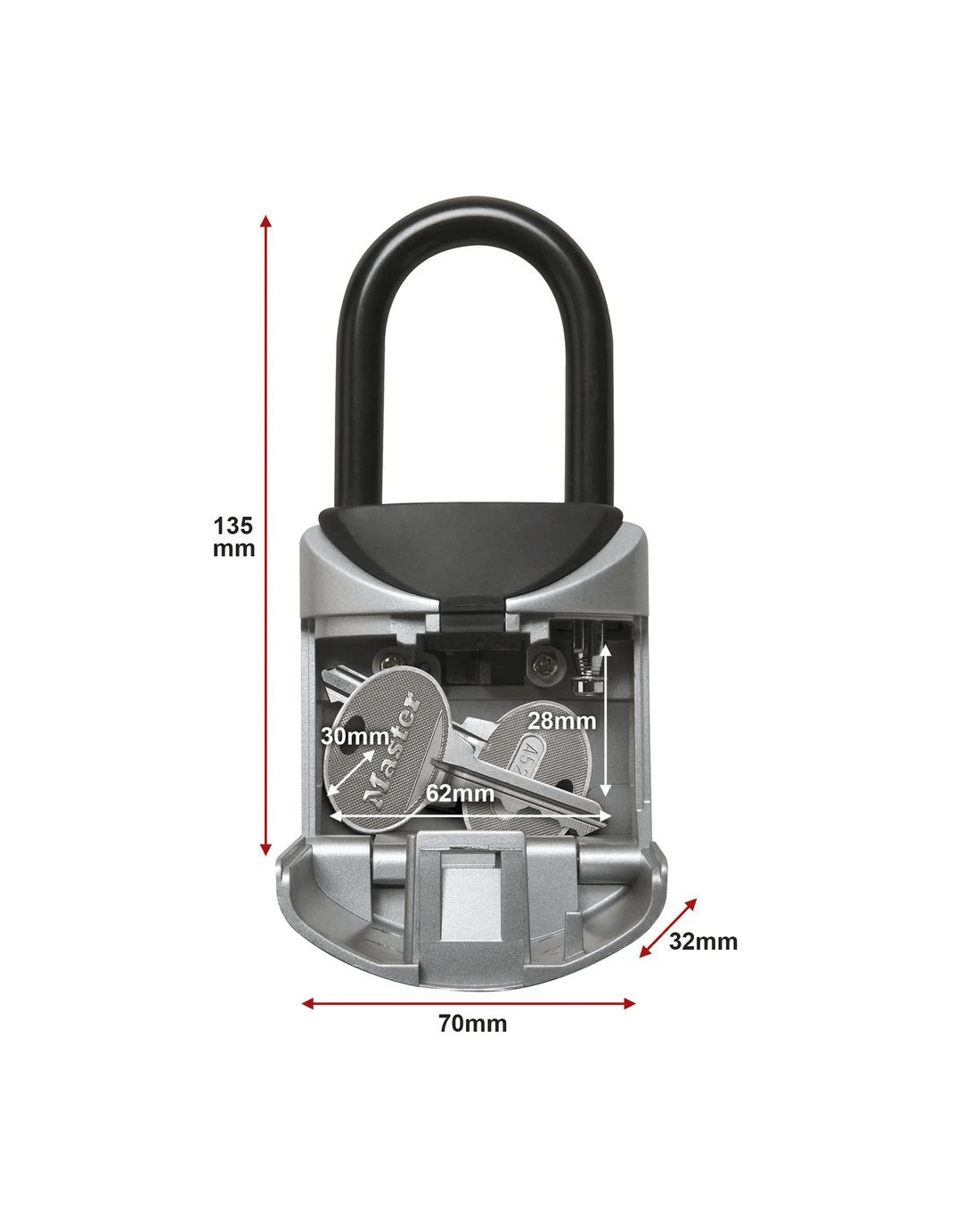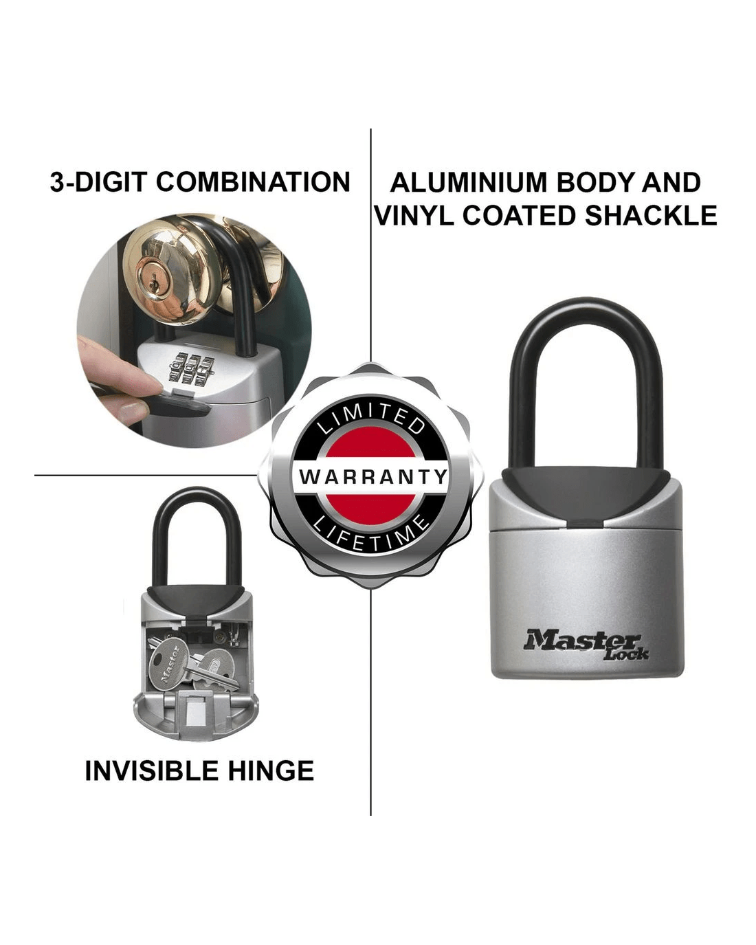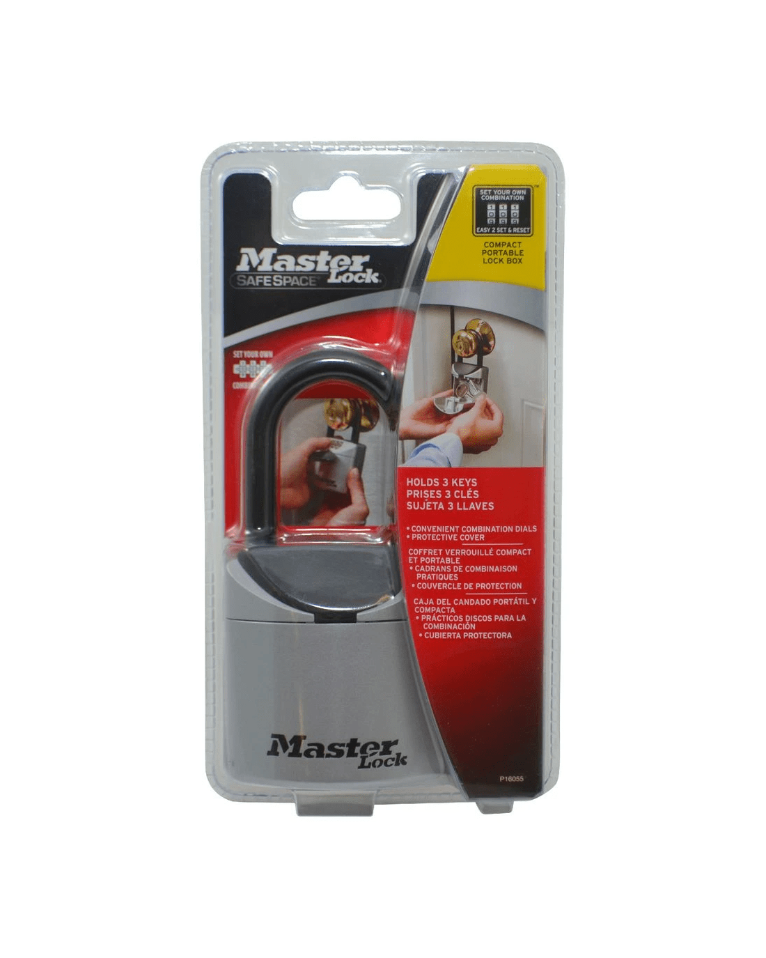 The Masterlock Medium Combination Portable Key Safe allows you to securely store keys or access cards and also take them on the go. It unlocks via a 3 digit combination for keyless access convenience.