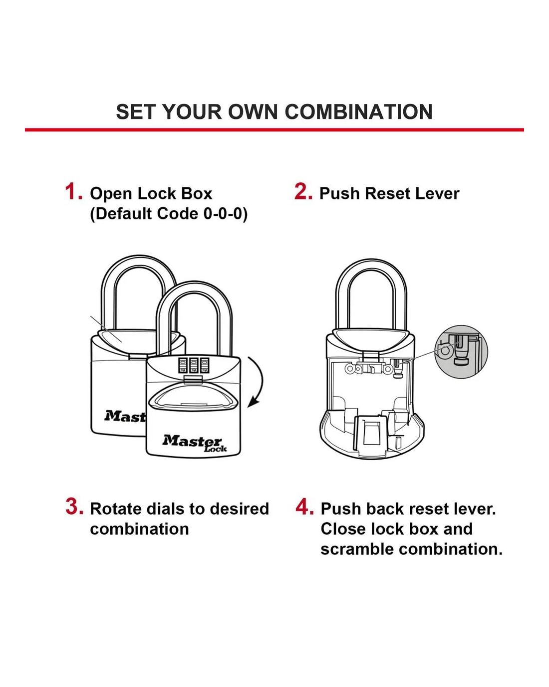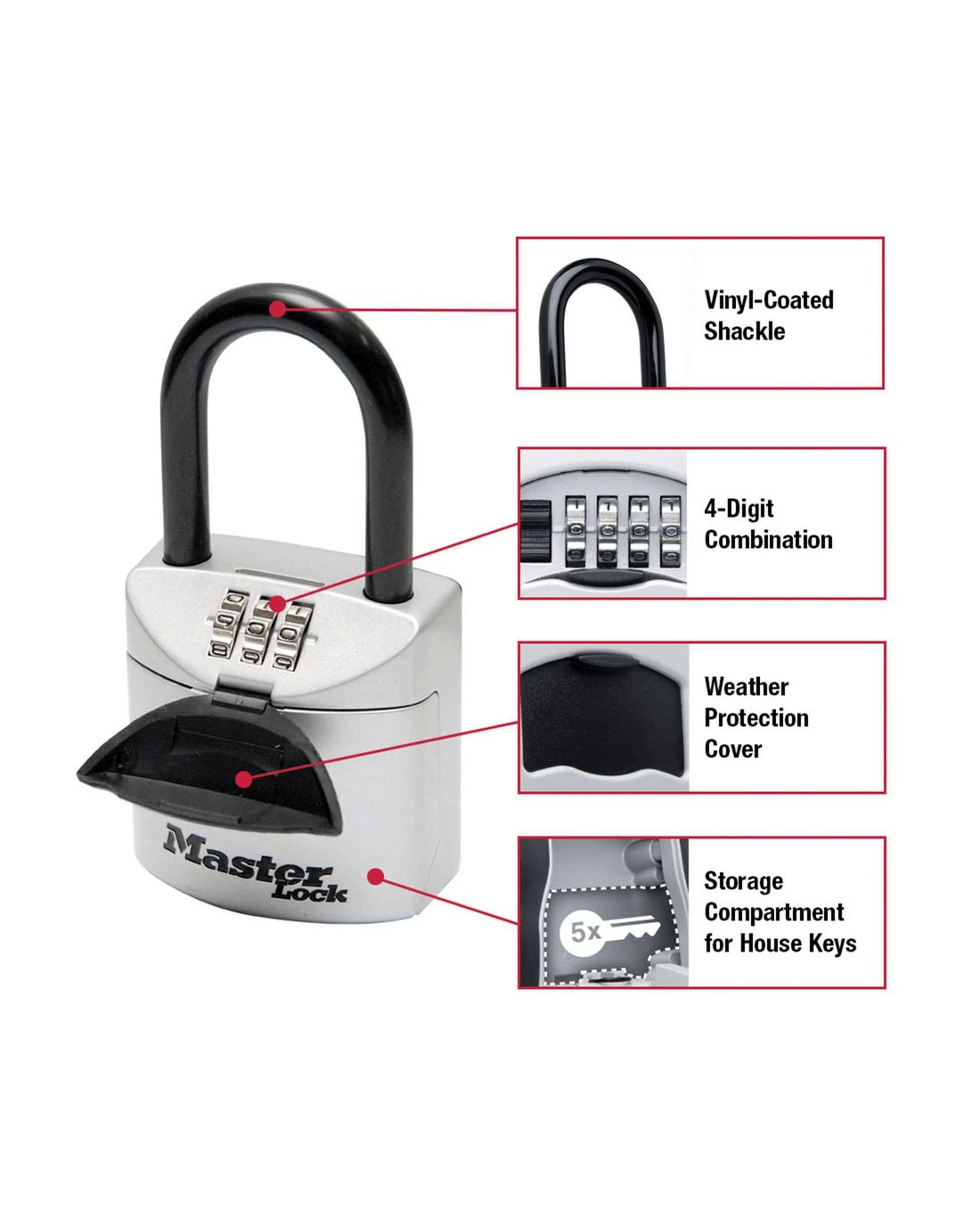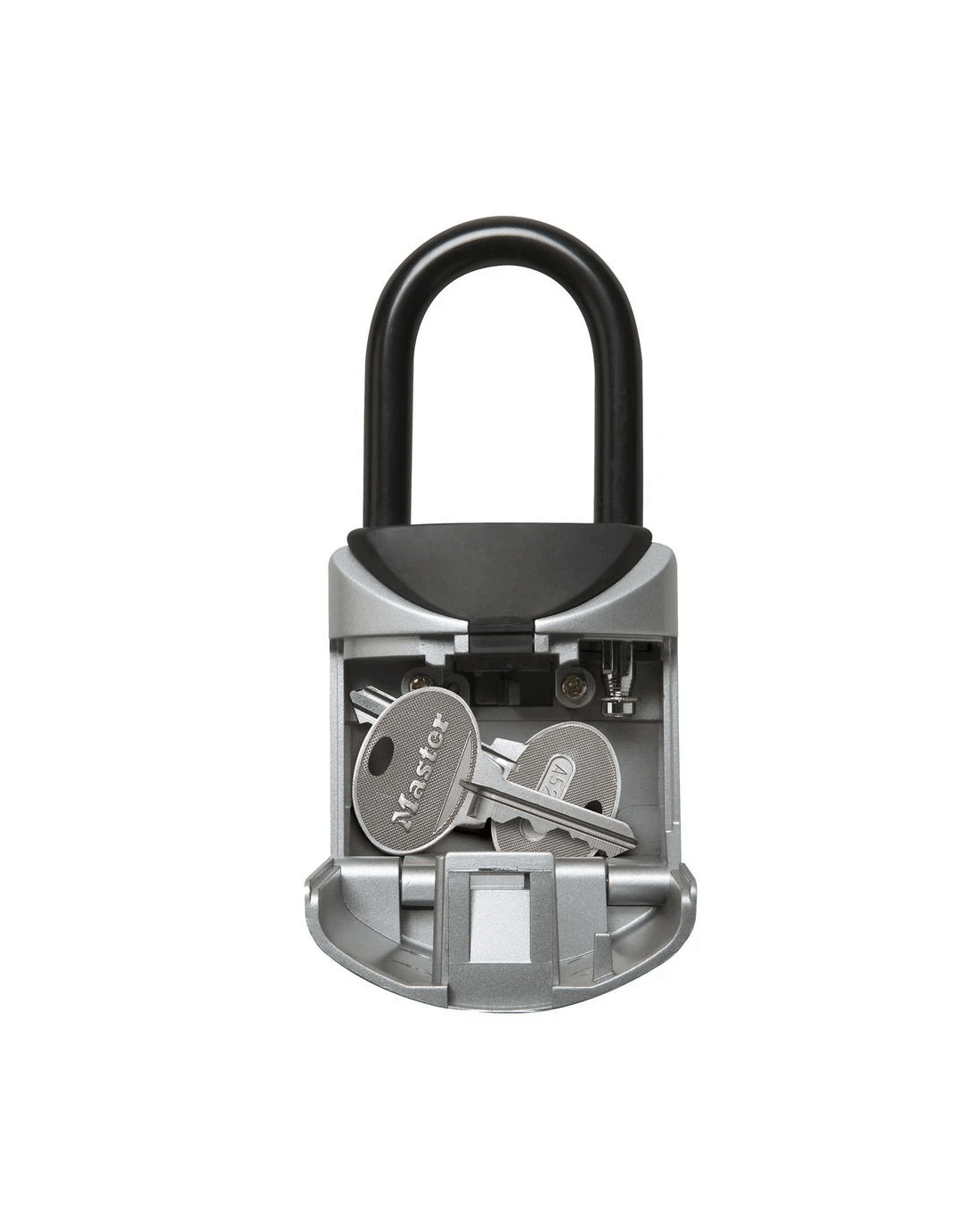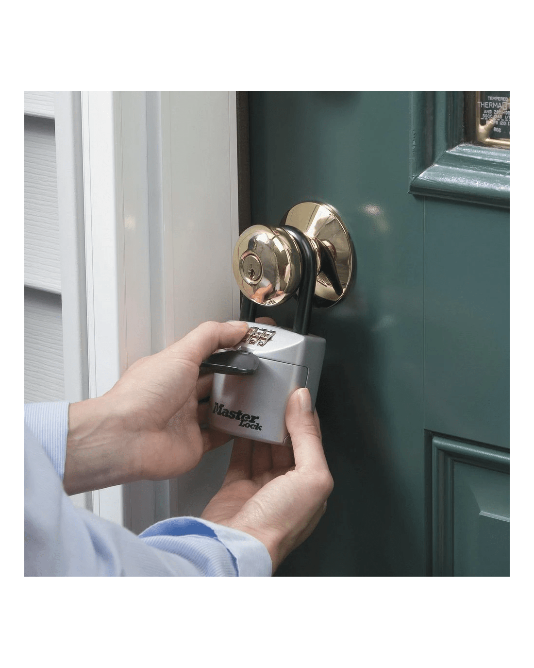 The Masterlock Medium Combination Portable Key Safe allows you to securely store keys or access cards and also take them on the go. It unlocks via a 3 digit combination for keyless access convenience.
