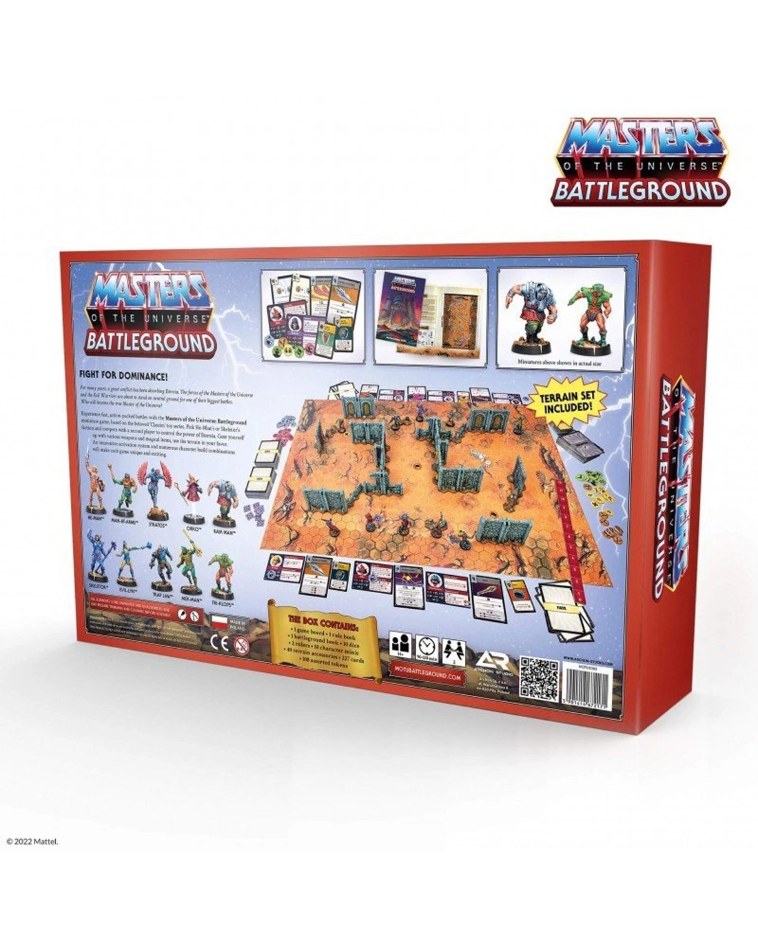 Masters of the Universe Battleground Starter Set - the miniature head-to-head game of magic and power based on the beloved series - fight for dominance in the magical world of Eternia. It's time for the Ultimate Skirmish on the Battleground!Equip your beloved characters, create your own fate, control your luck, and strategically plan your activations. So much to do in this "easy to learn-hard to master" dynamic skirmish! Clash against your enemies in the epic world of Eternia and determine its destiny! Ages: 14 + | Players: 2 | Playtime: 60 - 120 minFeatures
