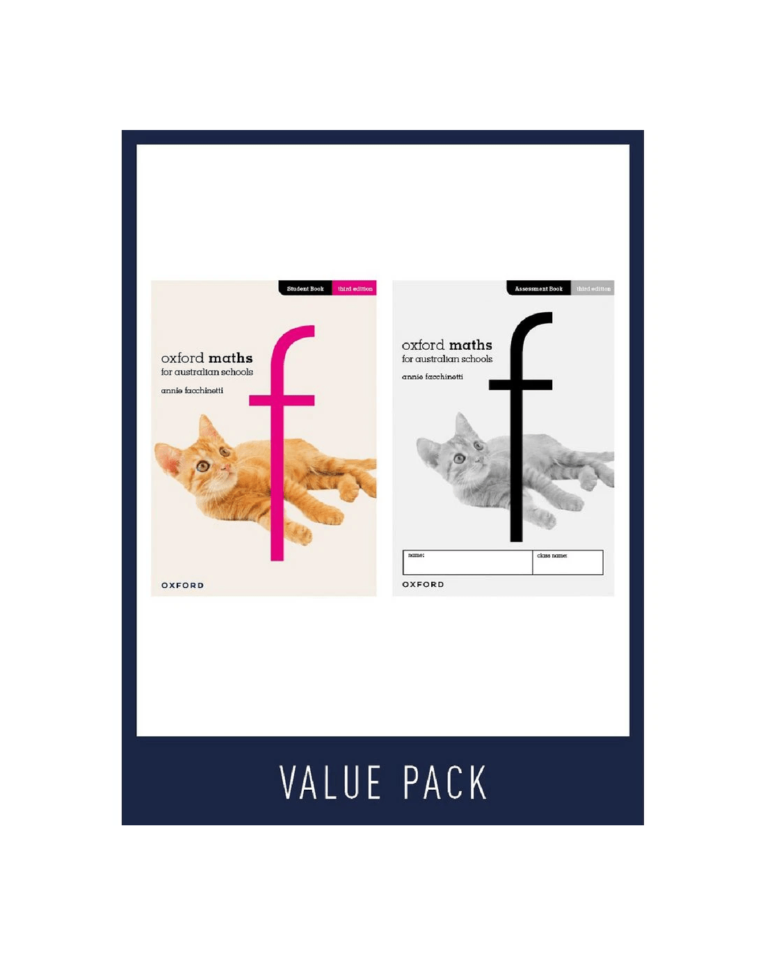 Oxford Maths 3e is a comprehensive and engaging mathematics program that ensures every Year F student can access the curriculum at their own point of need. It offers multiple pathways for students of varying ability, and supports the 'gradual release of responsibility' approach, where initial scaffolding is gradually reduced to allow students to become confident and independent mathematicians. This value pack contains both the student book and the assessment book.