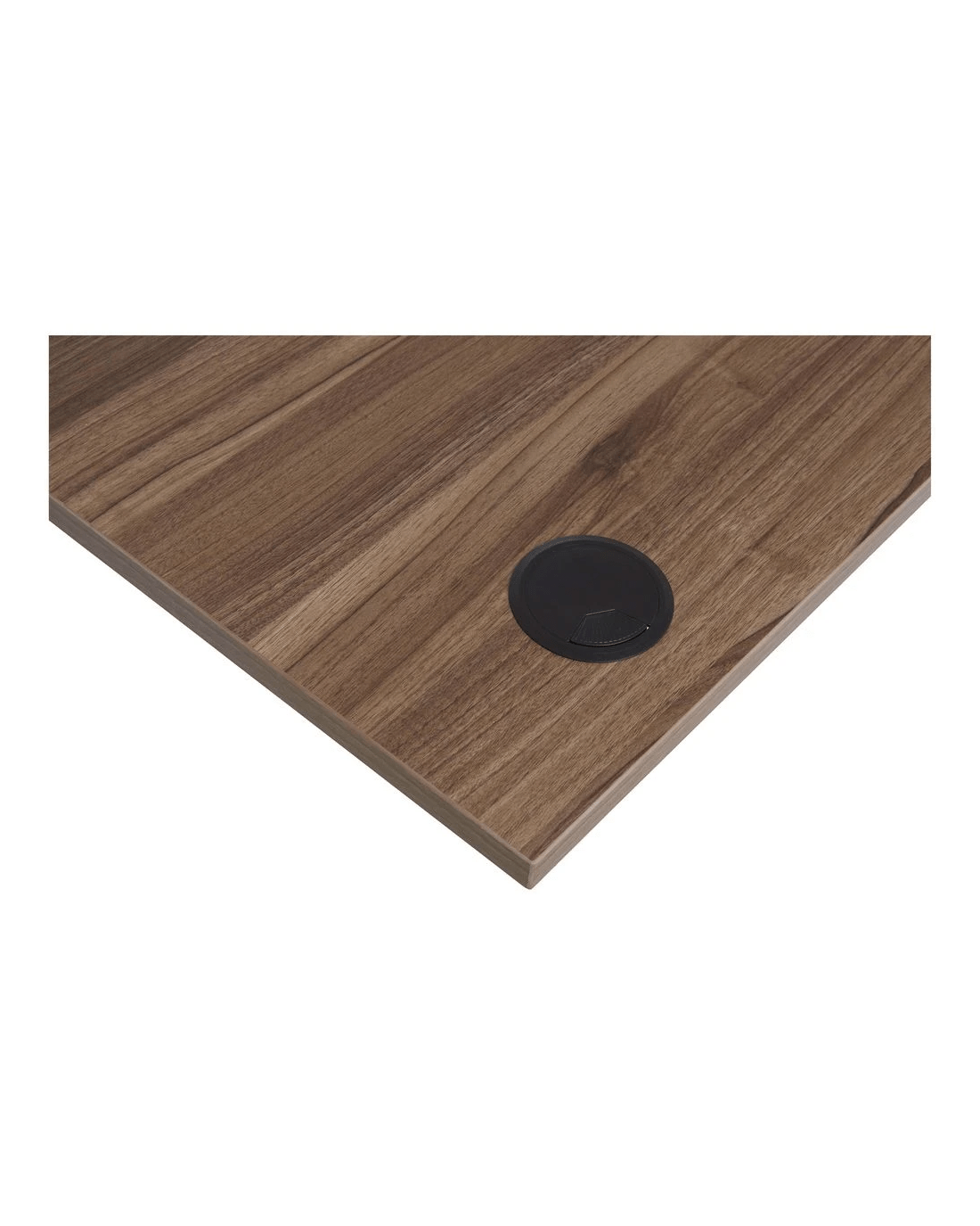 - It comes with a timeless, black frame and a trendy walnut desktop.
