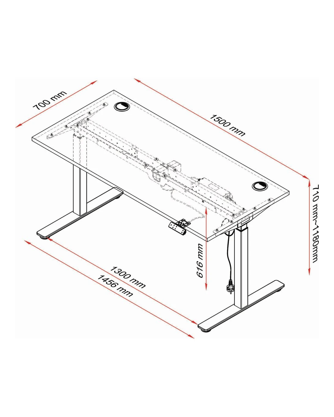 - Once assembled, it measures 1500 W x 700 D x 710 - 1180 H mm