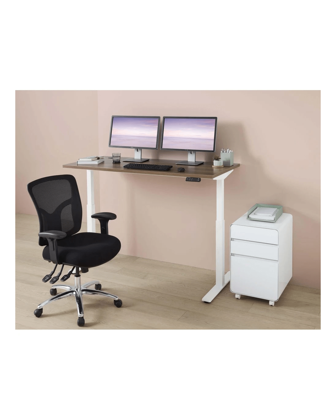 This Matrix Executive Sit Stand Electric height adjustable desk is perfect for use in your office space so you can work in comfort. It comes with a motor to control the adjustments so you can alternate between sitting or standing whenever you like, helping to reduce poor posture and strain on your neck and shoulders.