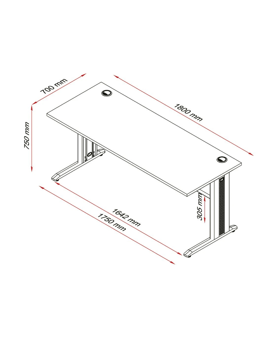 - Once assembled, the desk measures 1800 W x 700 D x 750 H mm.
