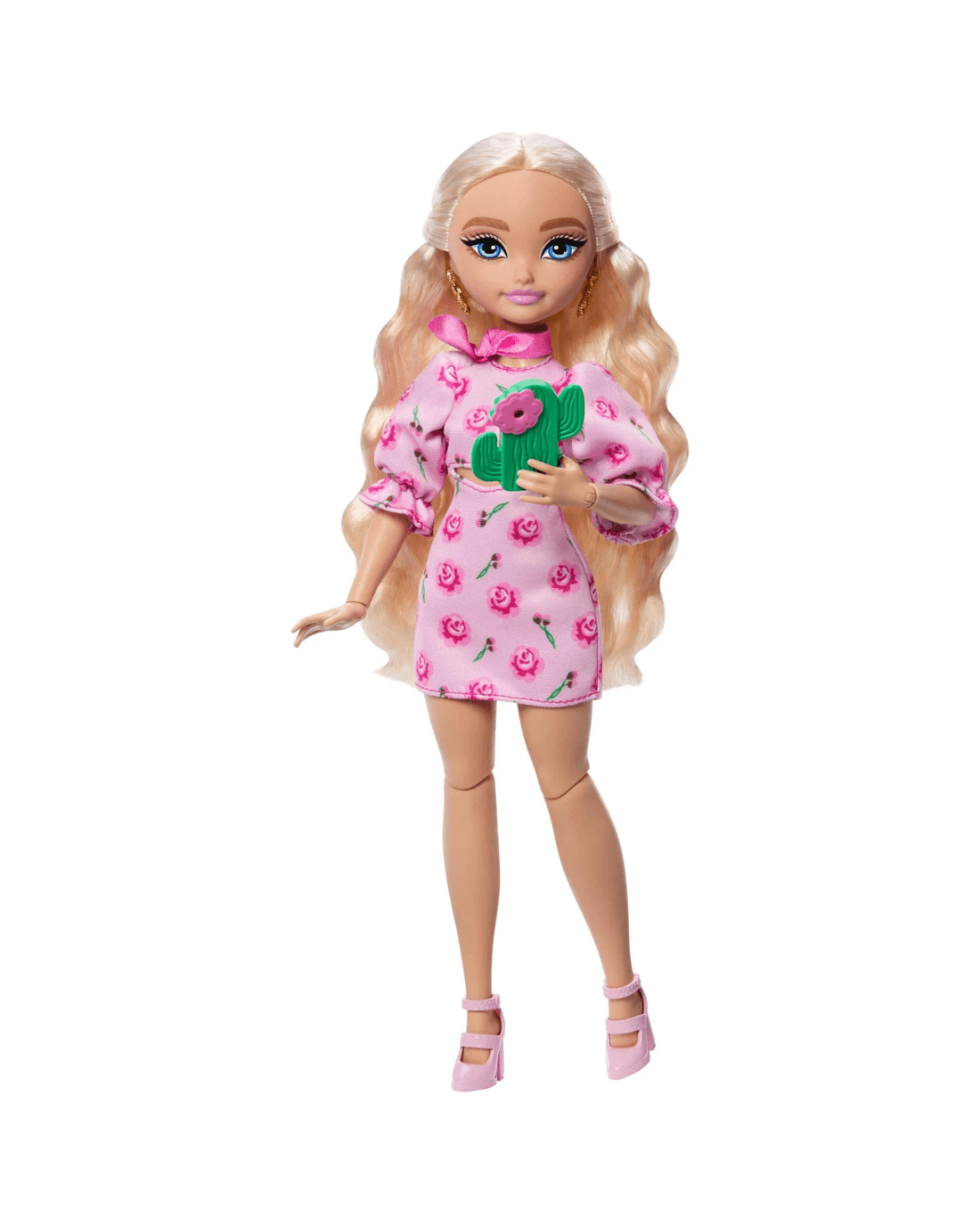 - Barbie features her long, blonde hair for styling fun!