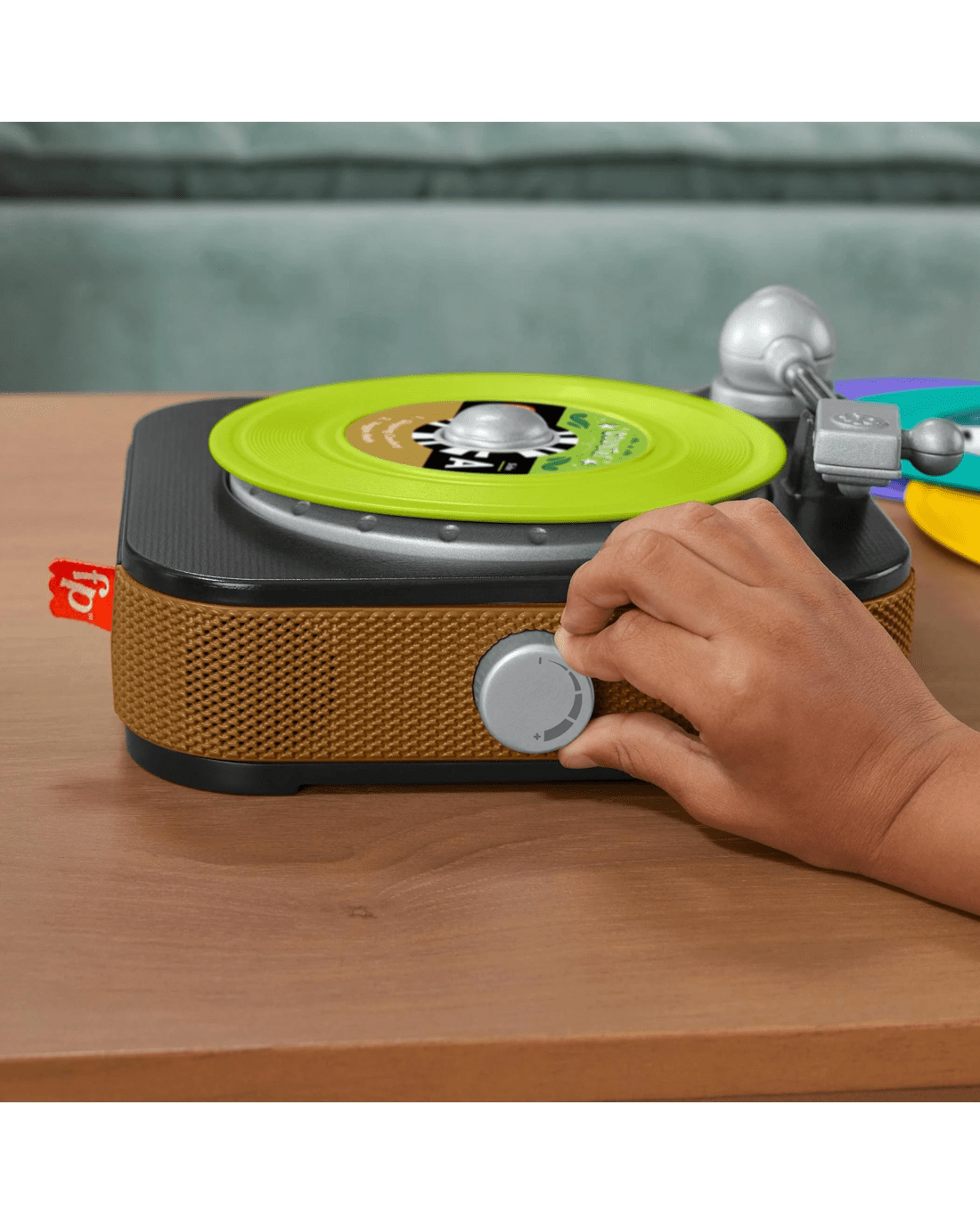 - Kids control the play: Place the record arm into the groove to hear songs; use the knob to adjust the volume