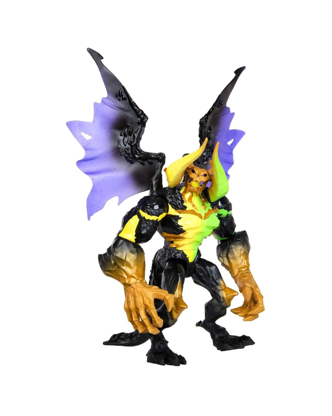 This Cosmic Terror Skeletor™ action figure provides a deluxe version of the ultimate villain of the third season of He-Man™ and The Masters of the Universe™ that will tower over other figures. With cosmic-decorated dragon wings expanding to 16 inches wide, as well as 16 posable joints, savage claws with an attack action, pointed horns and dragon-like tail, it's a terrifying look ready for battle play. Get ready to re-enact cosmic good vs. evil conflicts or create a wide-winged display. Colours and decoration may vary. Ages: 4 +